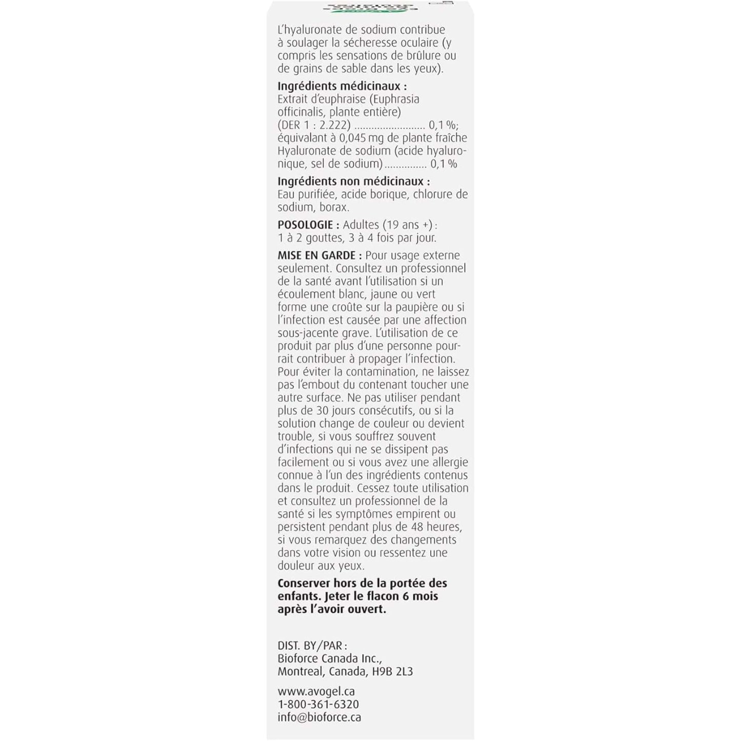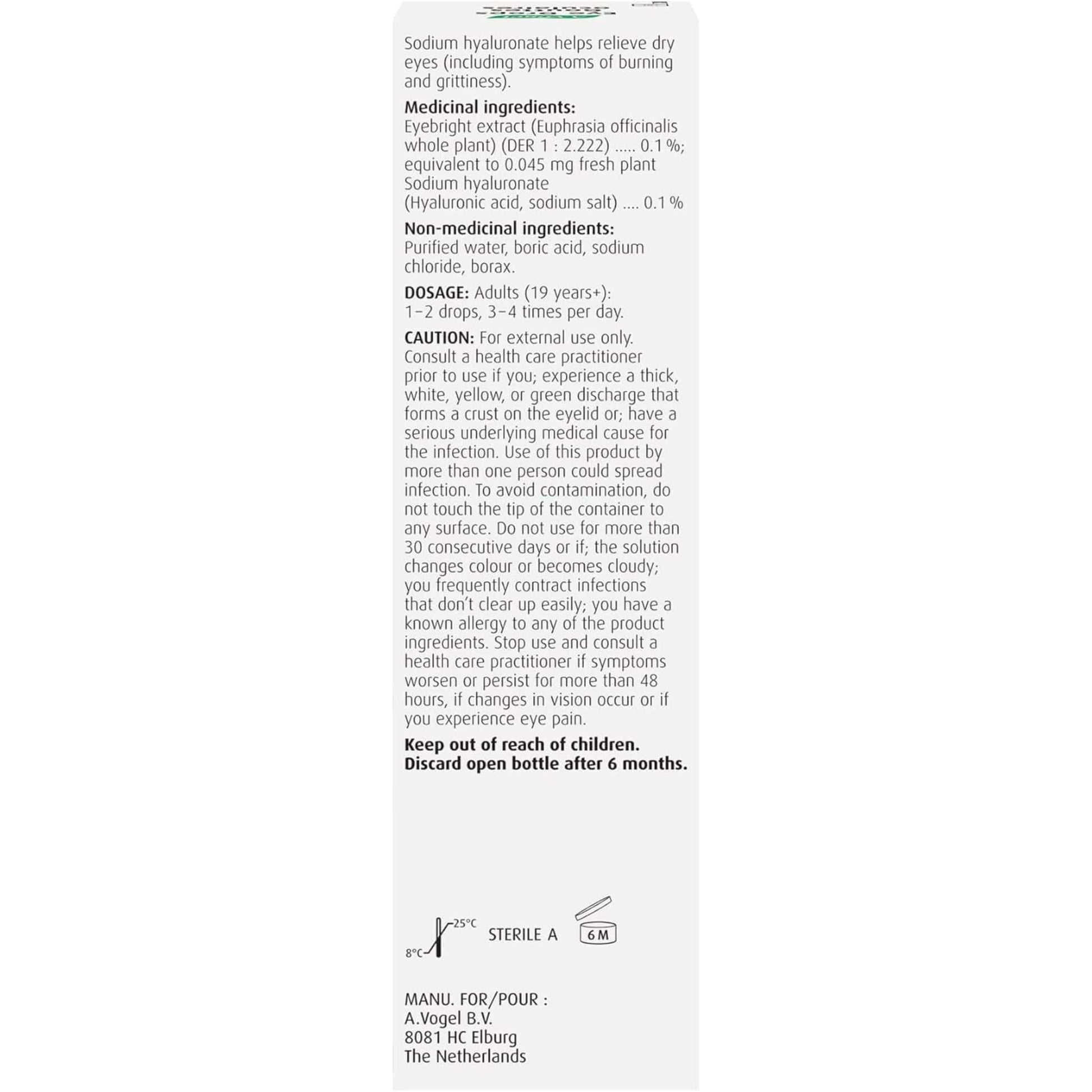 | Eyebright (Euphrasia officinalis whole plant) (DER 1 : 2.222) 0.1 %; equivalent to 0.045 mg fresh plant Sodium hyaluronate (Hyaluronic acid, sodium salt) 0.1 % |