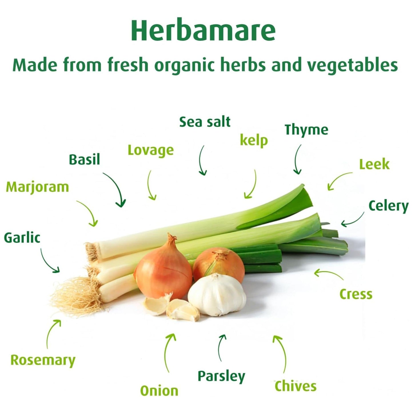 Enhance the flavor of your dishes with A. Vogel Herbamare Original, a healthy and delicious organic herbed sea salt. Made with 1/3 less salt, this seasoning salt features a unique blend of 12 freshly harvested, organically grown herbs and vegetables infused into sea salt. Perfect for seasoning vegetables, meat, poultry, fish, and more. Free from MSG, gluten, lactose, additives, or preservatives. Elevate your culinary experience with this Non-GMO project certified kitchen staple.