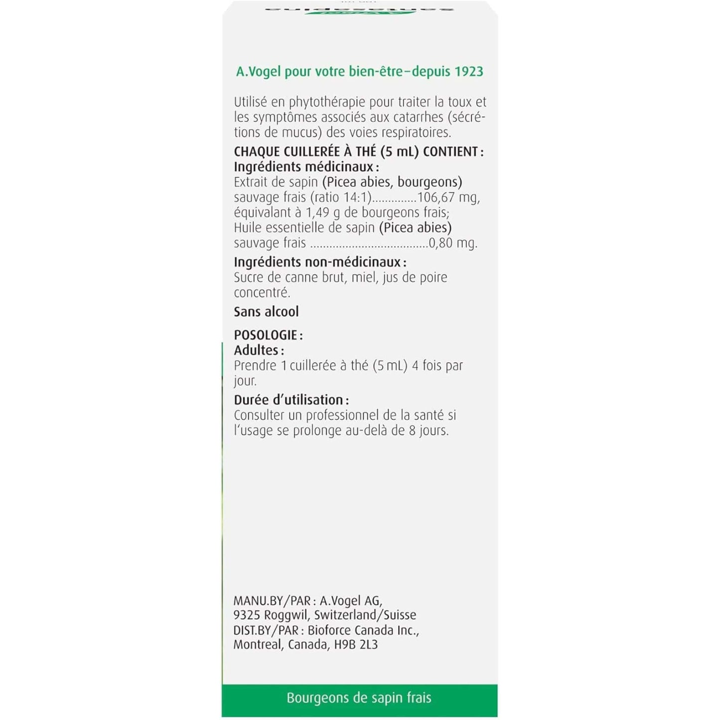 Adults: Take 1 A. Vogel Soothing Cough Syrup teaspoon (5 mL), 4 times daily. Duration of use: Consult a healthcare practitioner for use beyond 8 days.