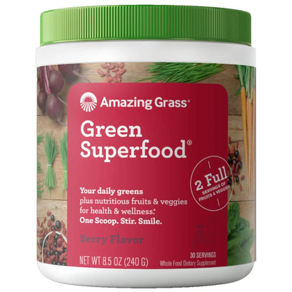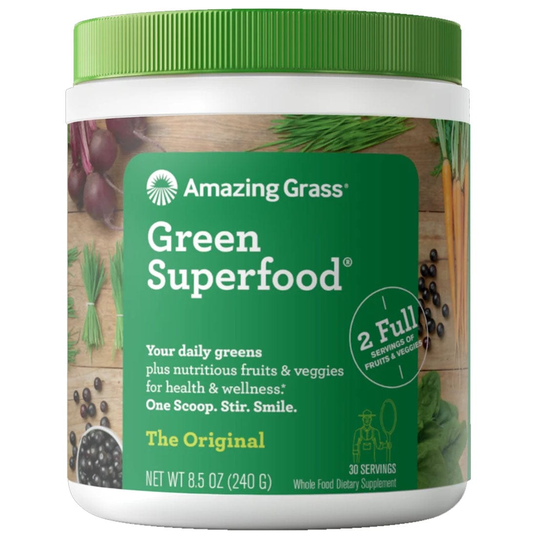 Amazing Grass Green SuperFood is a blend of alkalizing greens, antioxidant rich whole food fruits and vegetables, immune support herbs, and friendly pre & probiotics.* Our powder mixes so easily with water; you'll wonder how essential green nutrition could taste this good.