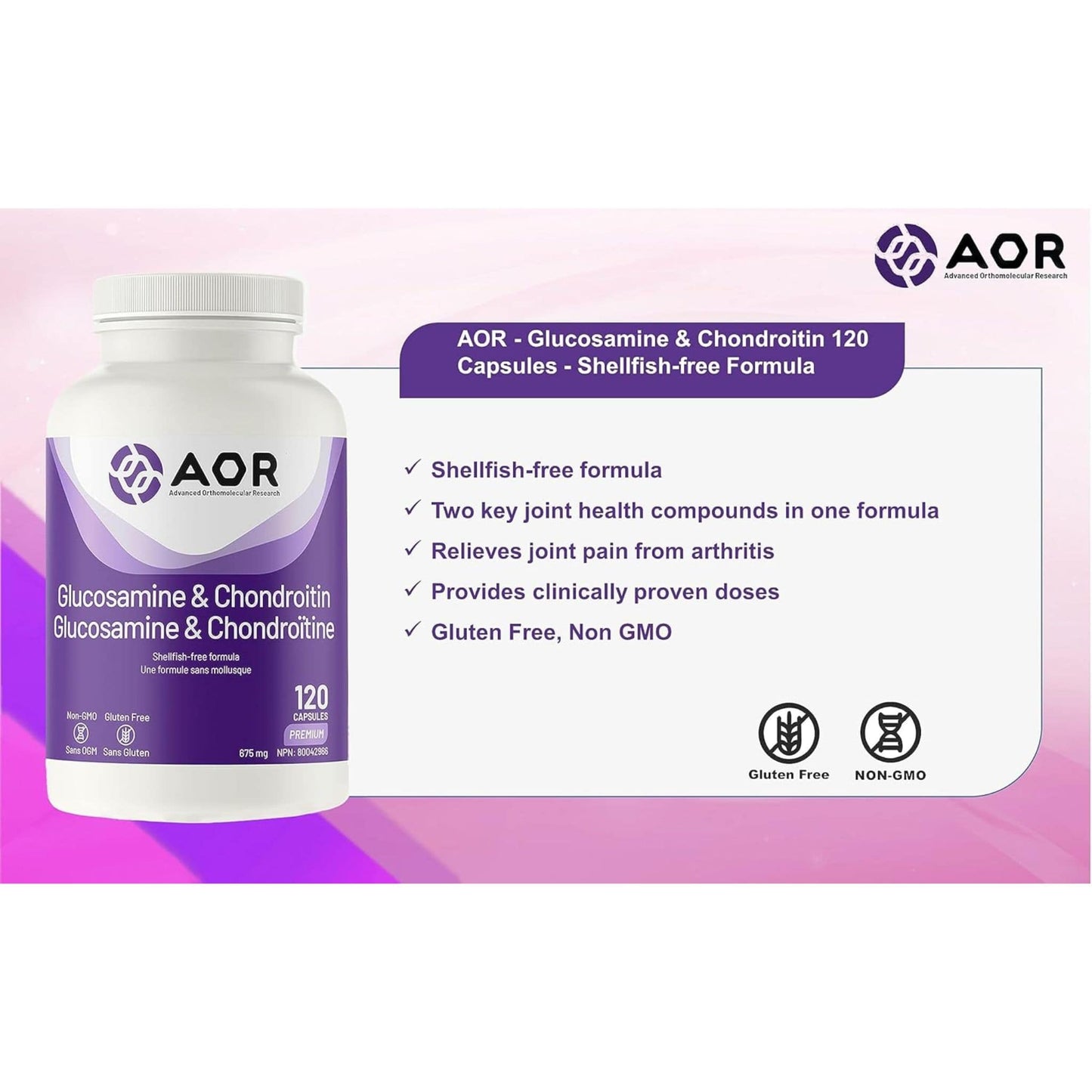 AOR Glucosamine & Chondroitin, 675mg, 120-240 Vegetable Capsules