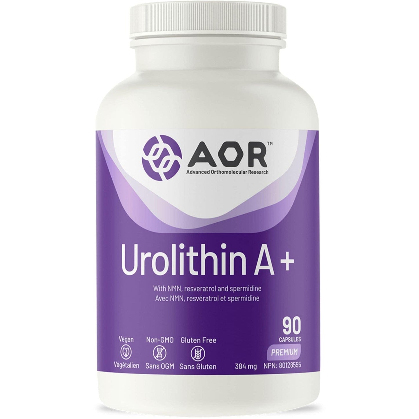 AOR Urolithin A+ is a premium blend featuring NMN, resveratrol, and spermidine to support cellular health, energy metabolism, and the maintenance of good health. This vegan, non-GMO, and gluten-free formula provides essential nutrients that promote tissue formation, energy production, and the body's ability to metabolize nutrients.