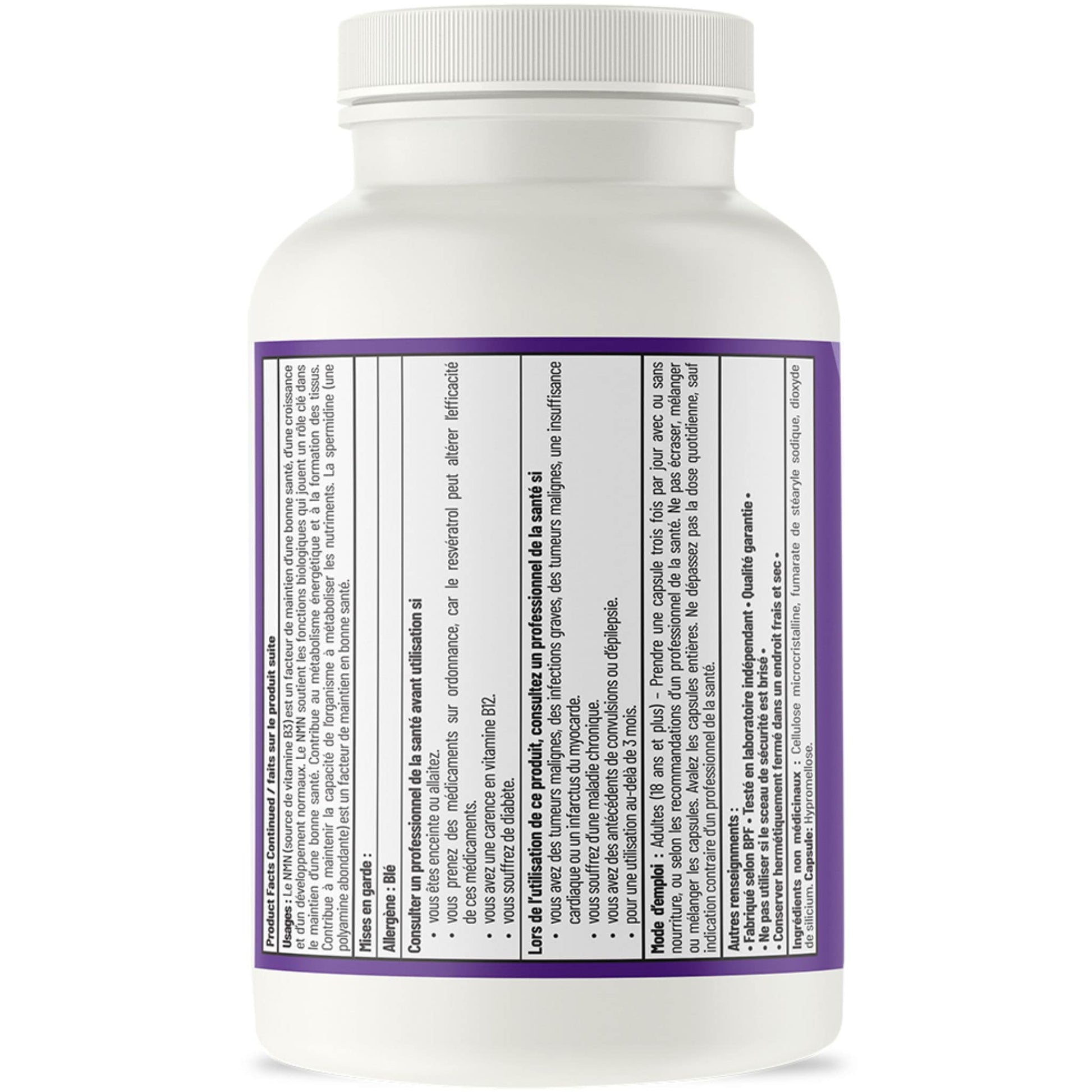 Resveratrol, known for its antioxidant properties, complements NMN by further supporting cellular health and energy production. Spermidine, an abundant polyamine, also contributes to the maintenance of good health, offering additional cellular support. Together, these ingredients create a potent formula aimed at enhancing energy, supporting cellular functions, and promoting overall well-being.