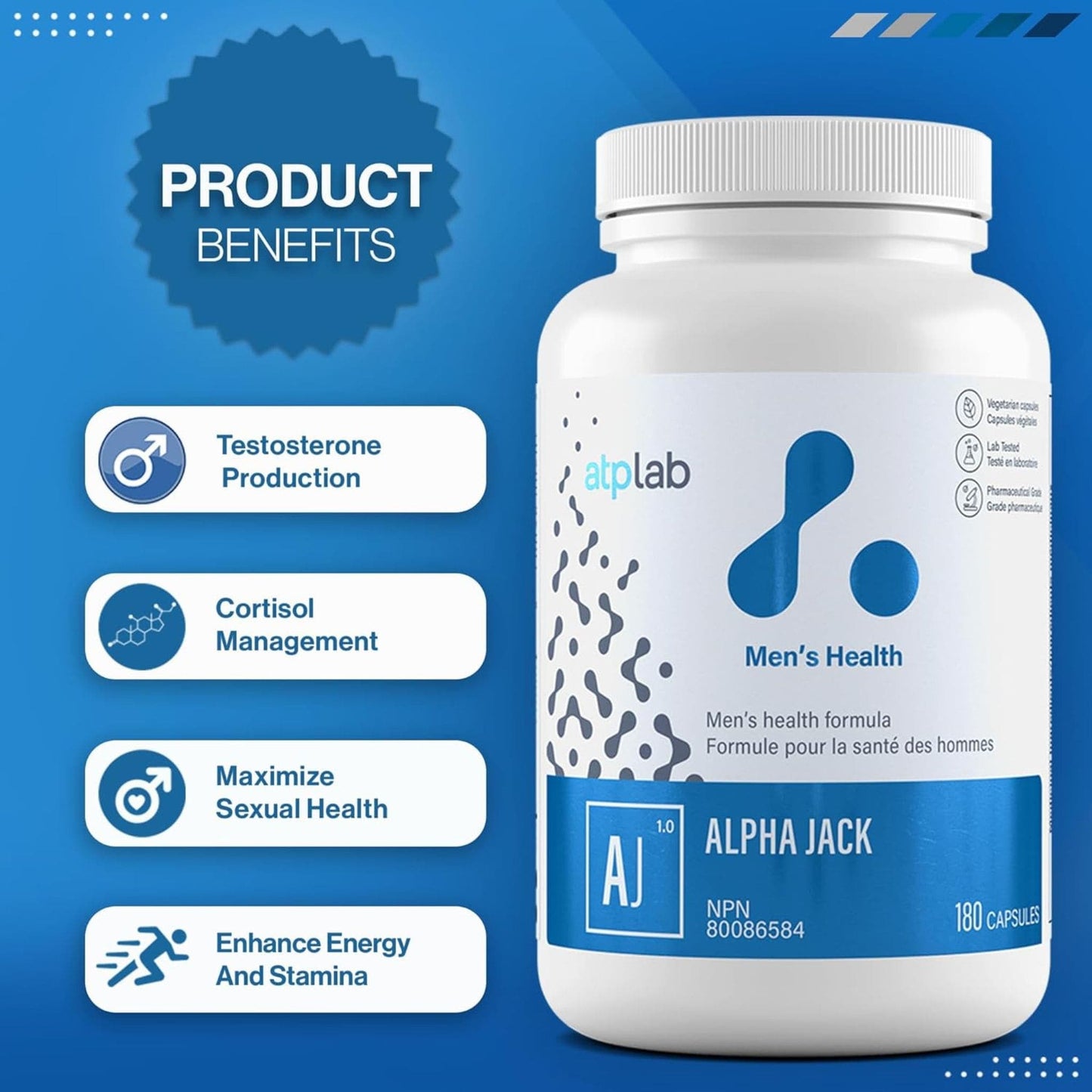 ATP Lab Alpha Jack delivers a blend of research-backed ingredients, including Maca Extract and Shilajit, to support men's health. Vegetarian capsules for easy supplementation.