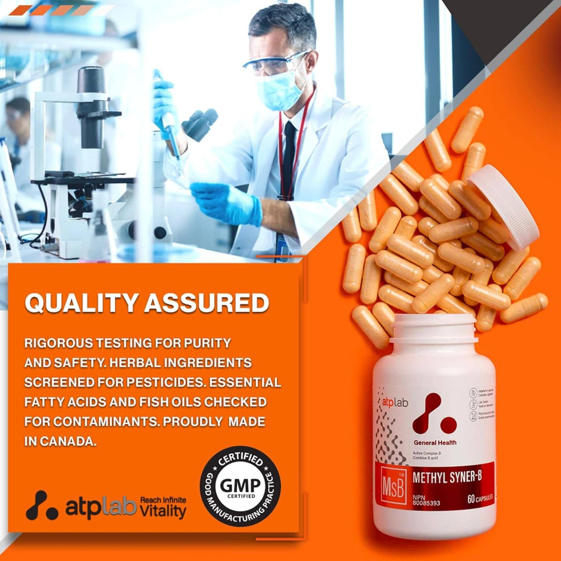 ATP Lab Methyl Syner-B delivers an active vitamin B complex to boost energy, support tissue formation, and maintains overall well-being.