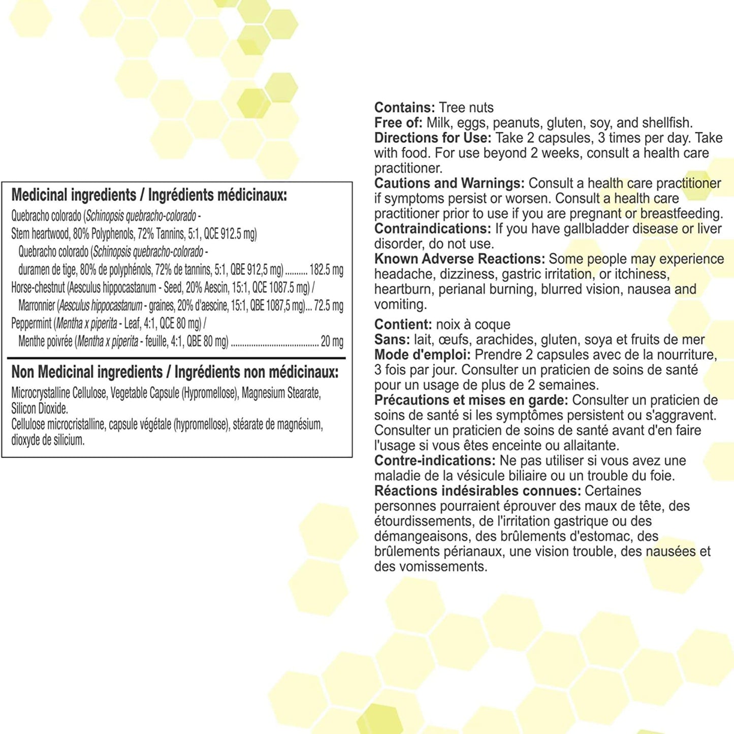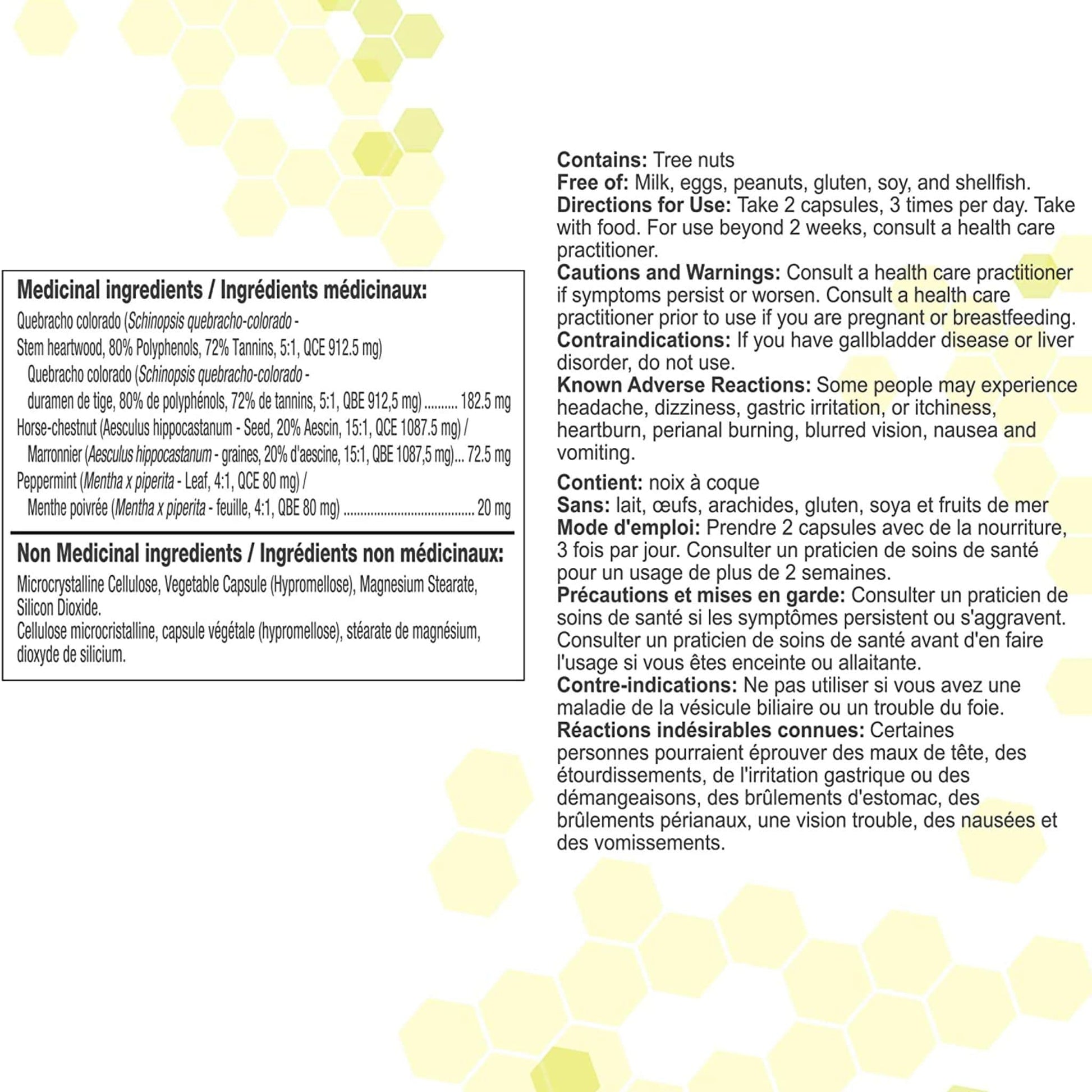 - Natural Ingredients: Patented blend of Quebracho Colorado, Horse Chestnut, and Peppermint; non-GMO, gluten-free, and vegan.