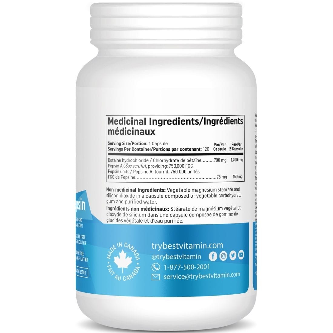 BestVitamin Best Betaine HCL and Pepsin, 120 Vegetable Capsules
