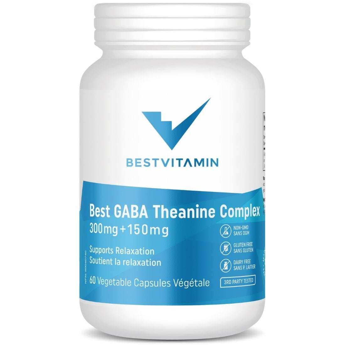BestVitamin Best GABA Theanine Complex, 300mg Plus 150mg, Mood, stress, anxiety support, 60 Vegetable Capsules