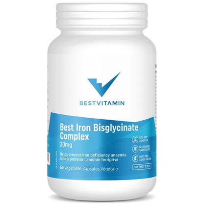 BestVitamin Best Iron Bisglycinate Complex, 30mg Iron, Enhanced bioavailability