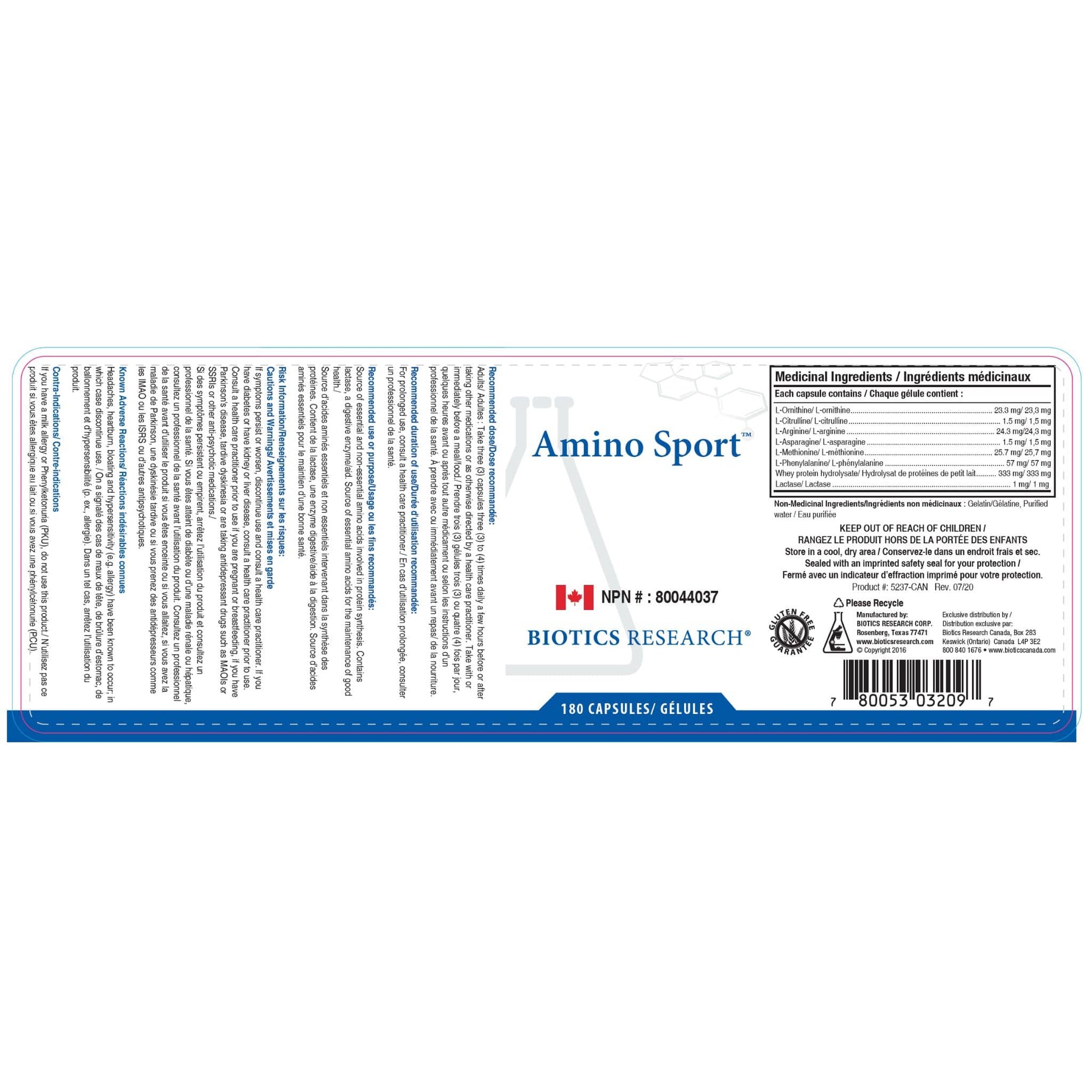 Biotics Research Amino Sport is a comprehensive supplement designed to support athletic recovery, digestion, and immune function. This formula combines essential and non-essential amino acids with lactase, a digestive enzyme, to aid in protein synthesis and maintain overall health.