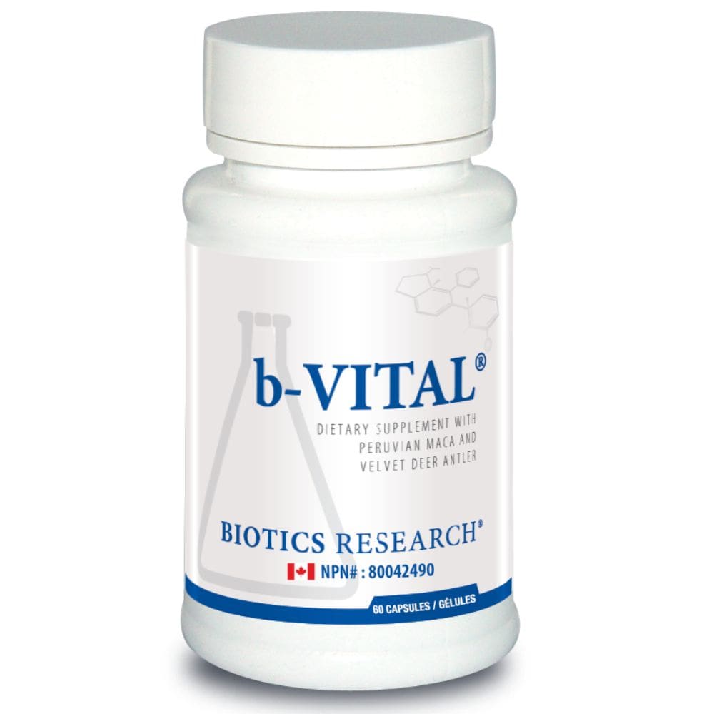 Biotics Research b-Vital augments testosterone levels, supports hormonal and libido health, boosts energy, and enhances overall well-being with maca and elk horn extract. Gluten-free.