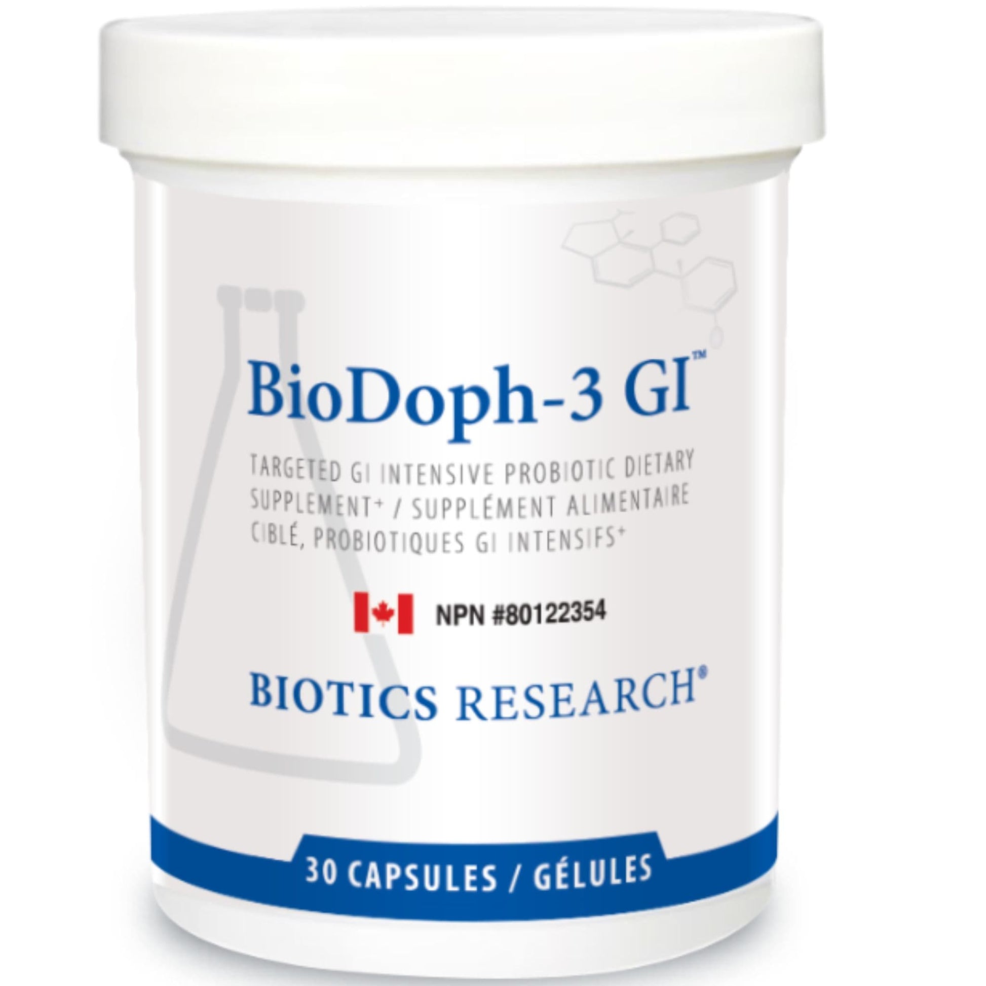 Biotics Research BioDoph-3 GI™ is a clinically validated probiotic formula that supports gut health, balances microflora, aids lactose digestion, and promotes a healthy mood.