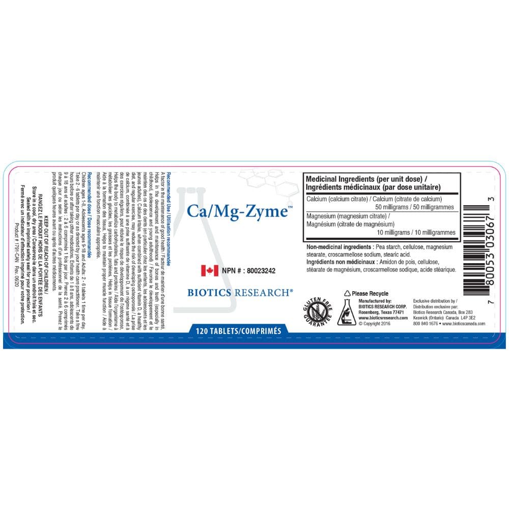 Biotics Research Ca/Mg-Zyme provides essential support for the maintenance of healthy bones, teeth, and overall bodily function. This formula combines calcium citrate and magnesium citrate, both in bioavailable forms, to enhance the effectiveness of these important minerals. Calcium, especially when combined with sufficient vitamin D, regular exercise, and a balanced diet, helps reduce the risk of osteoporosis. Magnesium supports tissue formation and muscle function, making this a great addition to any wellness routine.