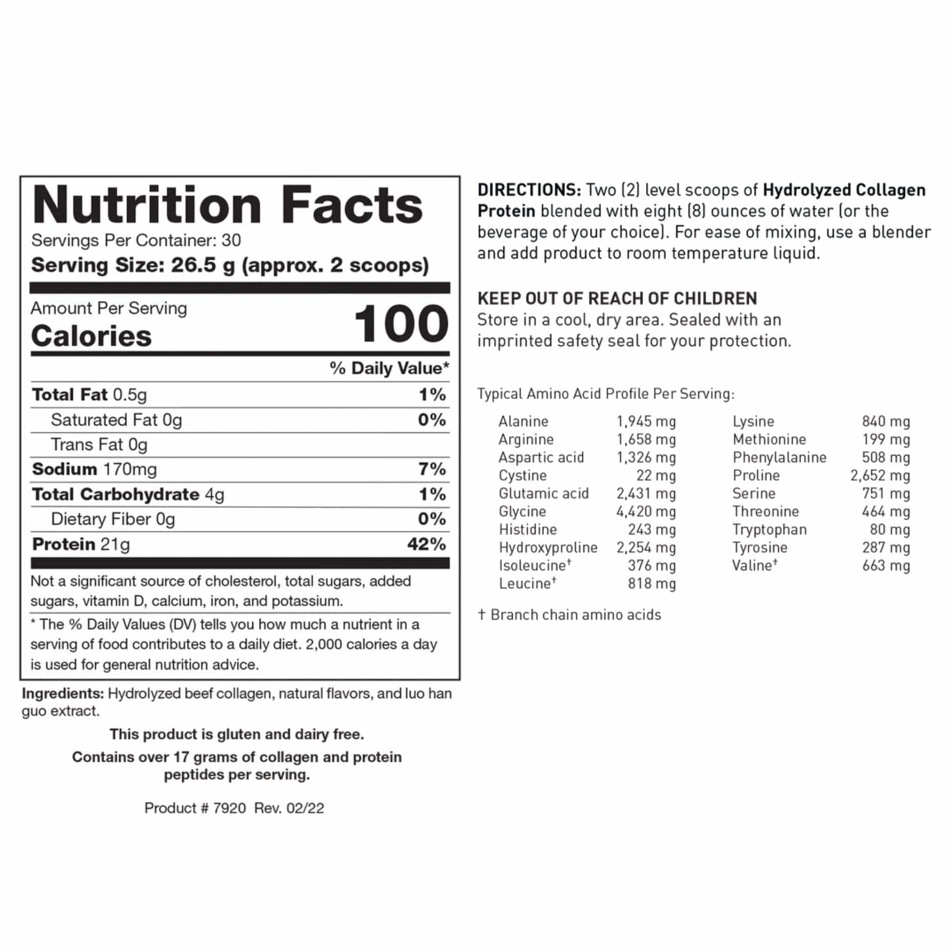 Two (2) level scoops of Hydrolyzed Collagen Protein blended with eight (8) ounces of water (or the beverage of your choice). For ease of mixing, use a blender and add product to room temperature liquid.
