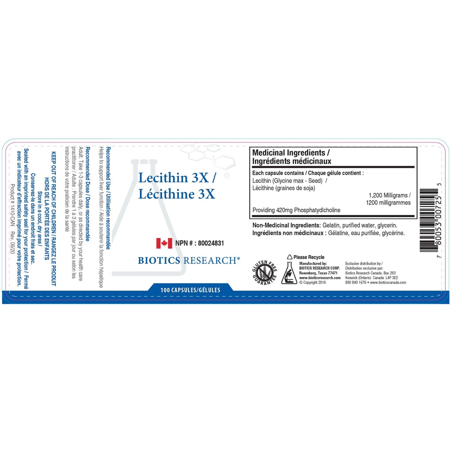 Biotics Research Lecithin 3X, Supports Liver Health and Improves Brain Function, 100 Capsules