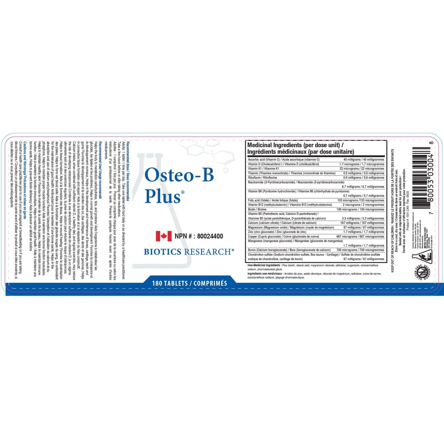 Biotics Research Osteo-B Plus is a complete nutritional supplement designed to support bone strength, maintenance, and overall skeletal health. More than just a calcium supplement, Biotics Research Osteo-B Plus features a robust blend of vitamins and minerals—including vitamin D3, vitamin K, magnesium, boron, and purified chondroitin sulfate—to nourish bones, teeth, and connective tissue.
