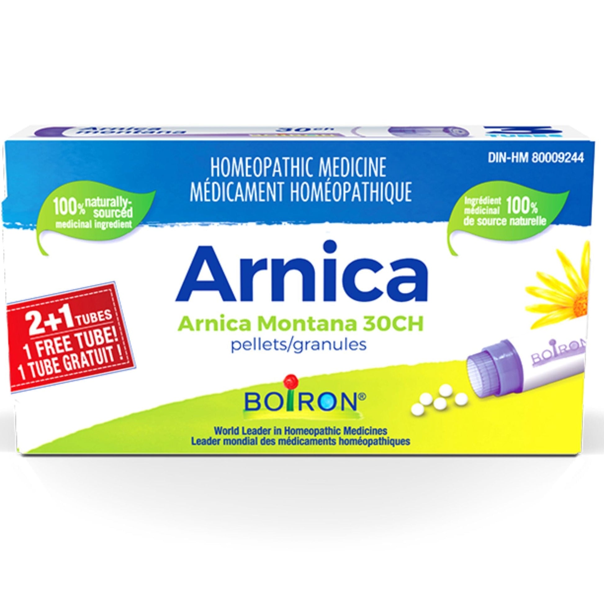- Includes three easy dispensing tubes of Arnica montana 30CH pellets for the price of two (48 doses total).