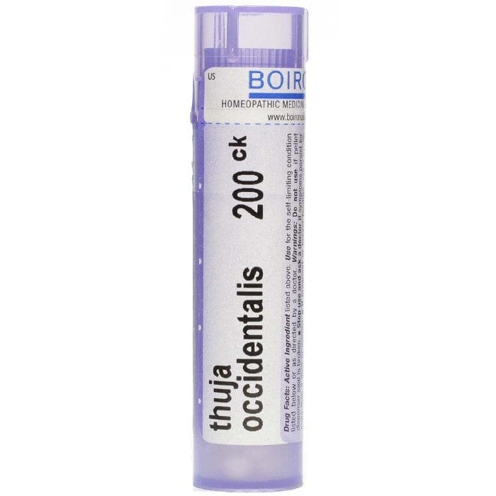 Dispense 5 Boiron Thuya Occidentalis granules from the tube and dissolve under the tongue. For infants, dissolve 5 granules in 30ml of water. Give 5ml each dose.