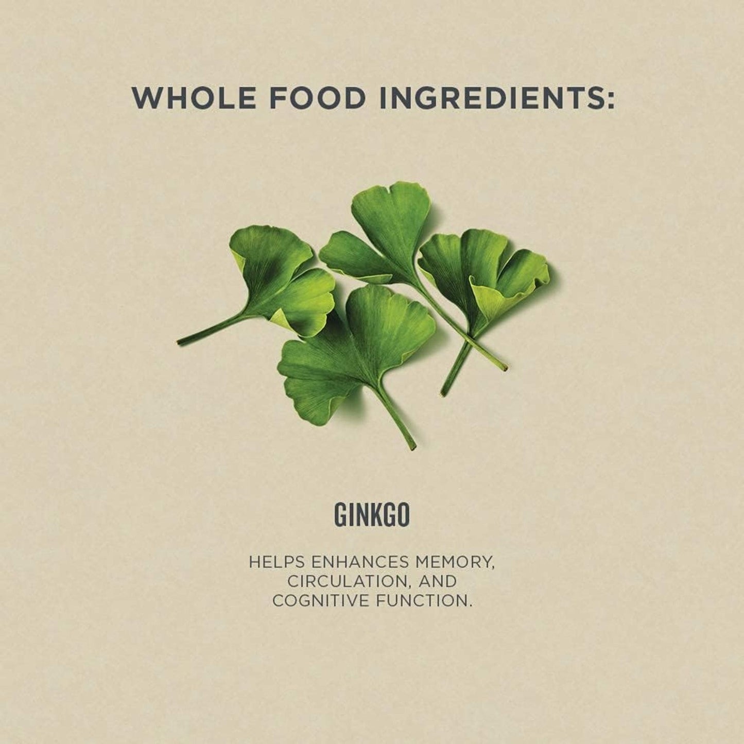 Gingko helps enhance memory, circulation, and cognitive function. It has also been shown to affect recall, recognition memory, reaction time, attention, concentration, mood, and energy levels.