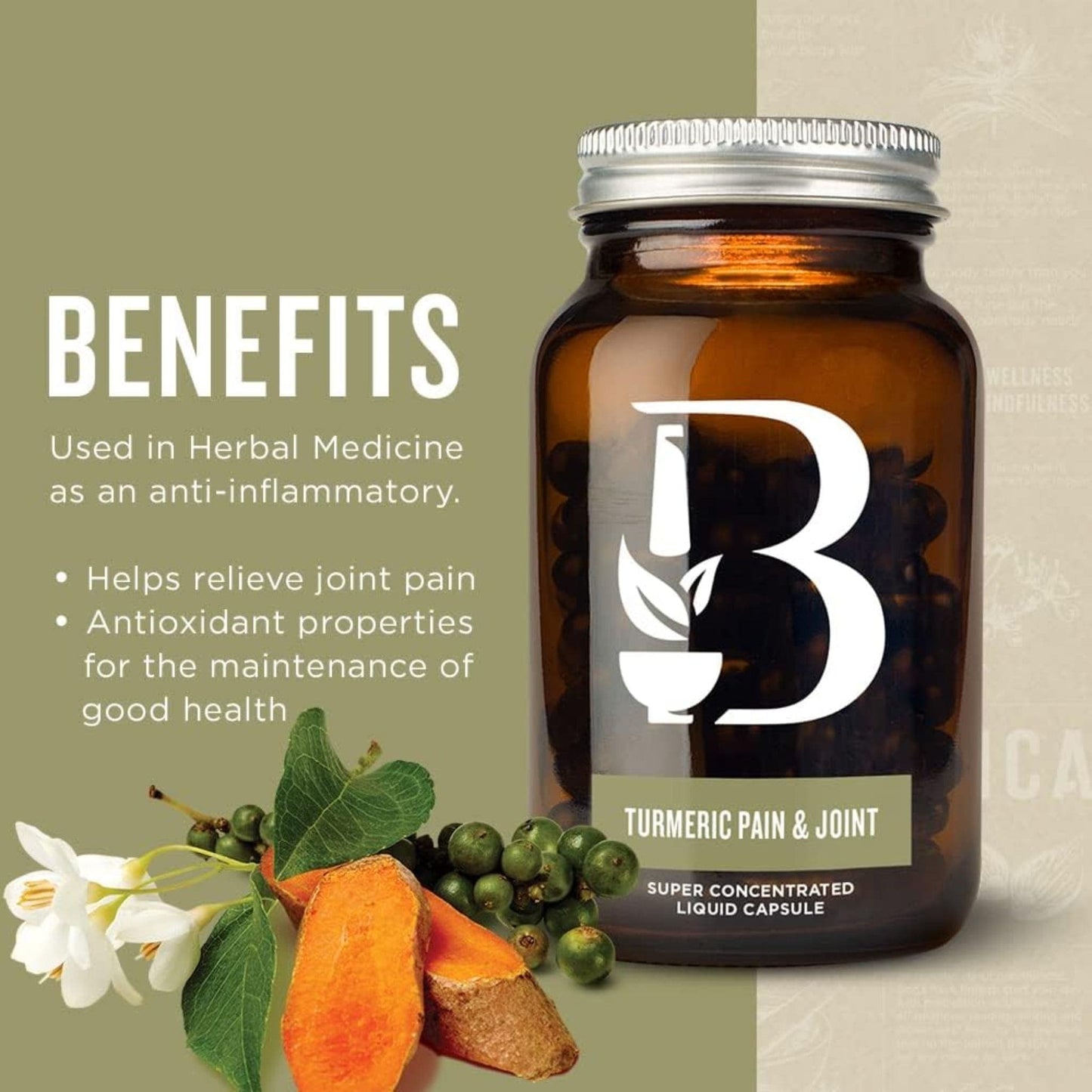 Botanica Turmeric Pain & Joint Liquid Capsules are a blend of herbs to help reduce pain and promote healthy joint mobility. Rather than isolating curcumin, we use the whole turmeric root with its complete range of compounds to maximize absorption, and then combine it with a unique blend of herbs.