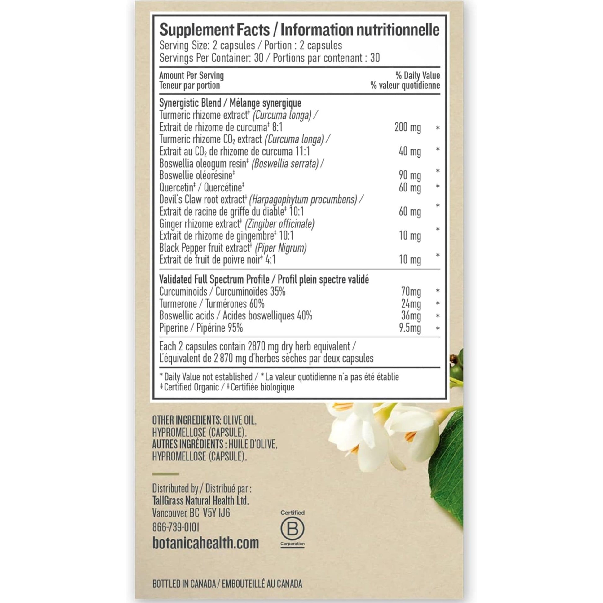 Botanica Turmeric Pain and Joint, Super Concentrated Liquid Capsules Details