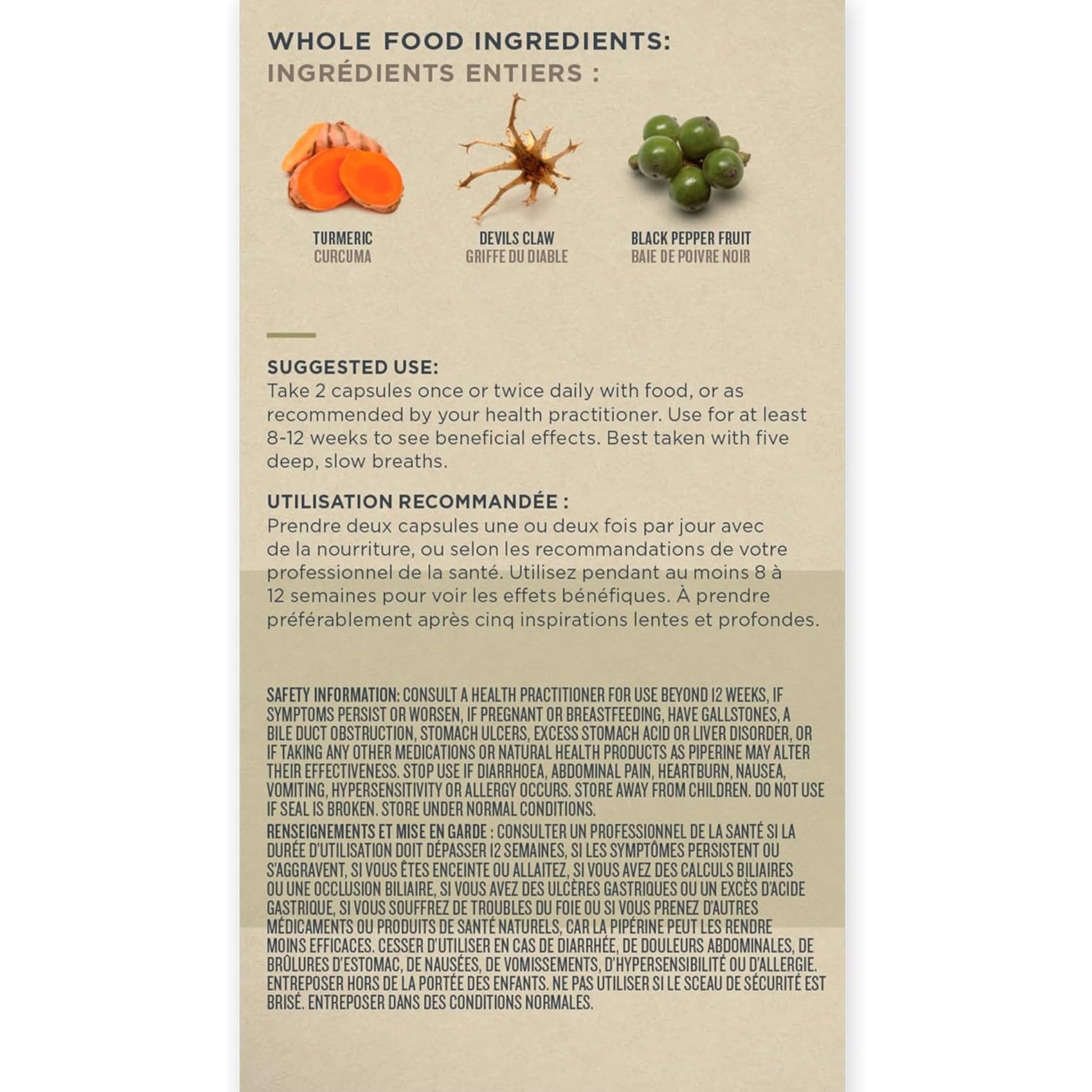 Take 2 capsules once or twice daily with food, or as recommended by your health practitioner. Use for at least 8-12 weeks to see beneficial effects. Best taken with five deep, slow breaths. For additional support, take with Botanica Turmeric Pain. Consult a health practitioner if pregnant or breastfeeding.