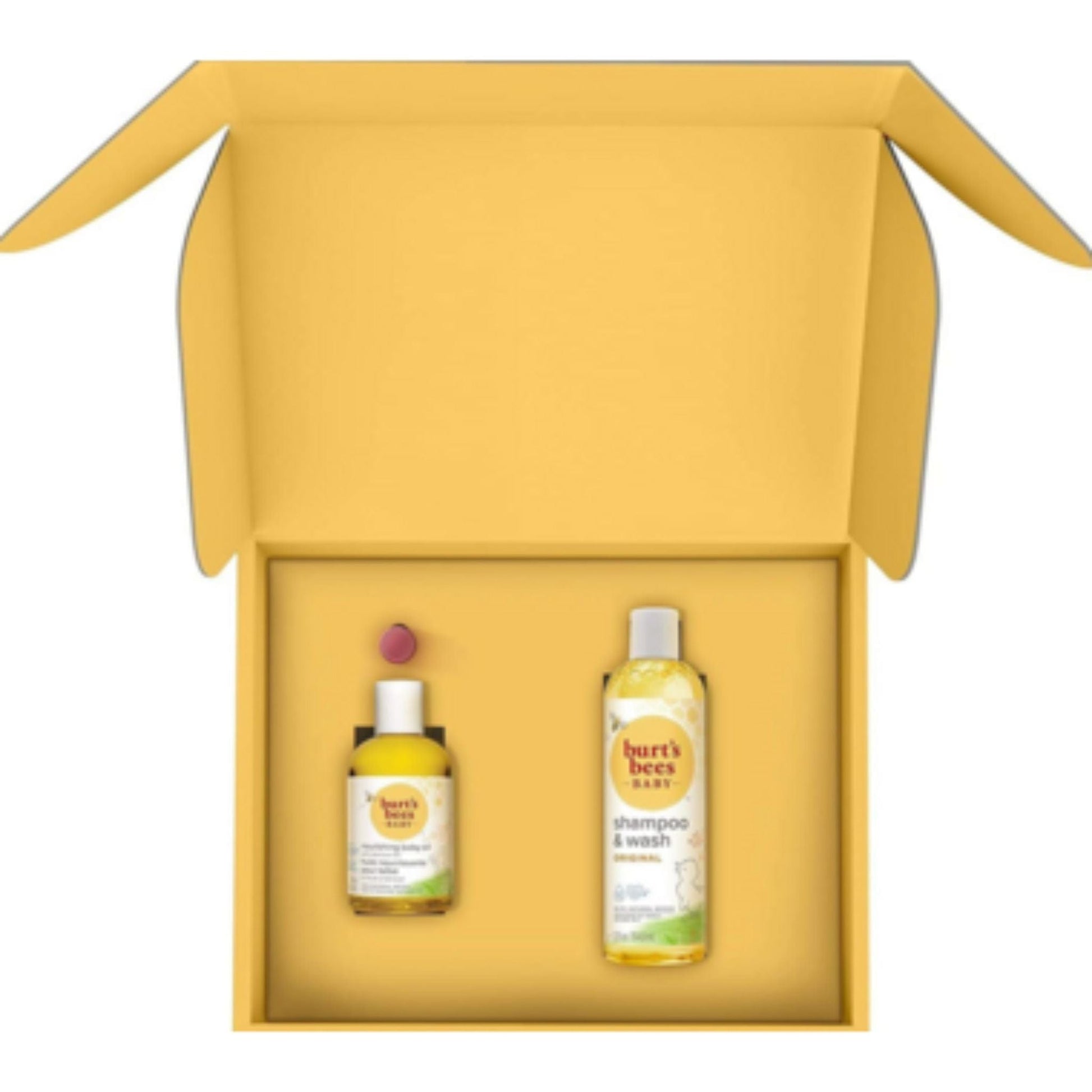 New mamas need care too. With gentle products that are safe for Mama and baby, Burt's Bees baby and mom gift set has everything a baby needs for clean, healthy-looking hair and skin, Plus a trusted natural origin tinted lip balm to soothe mom's lips and leave a hint of color. The Burt's Bees baby shampoo & wash 12 Oz in this baby soap gift set is a mild baby wash and tear-free baby shampoo in one. Non-irritating, pediatrician-tested formula cleanses both hair and delicate skin. Nourishing baby oil 4 Oz is rich in antioxidants and vitamins and made with apricot and grape seed oil. Tinted lip balm is enriched with shea butter and a hint of color to help Mama take care of herself by conditioning and hydrating dry lips. All of the products in this baby bath kit are made with natural origin ingredients and formulated without parabens, phthalates, petrolatum, and SLS.