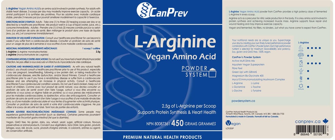 Refine your routine with L-Arginine Vegan Amino Acid powder from CanPrev. This vegan amino provides a high potency dose of pure, fermented