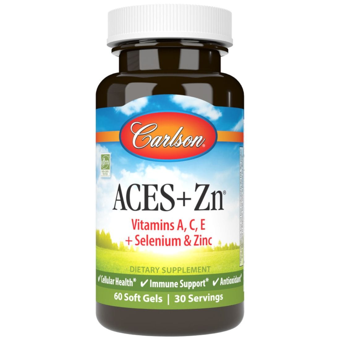 Carlson ACES + Zn® provides all the nutrients in the original ACES® formula, plus the mineral zinc. Selenium and vitamins A, C, and E are powerful antioxidants that help protect our bodies from free radical damage. Zinc supports immune system health and is an important component of one of the body's most powerful antioxidant enzymes, superoxide dismutase (SOD). SOD repairs cells and reduces the damage done to them by superoxide, the most common free radical in the body. Antioxidants, specifically Cardio ACES - vitamins A, C, E, and selenium - also play an important role in heart health. Get four antioxidants plus zinc all in one soft gel.
