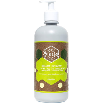 A fresh and clean scent with potent anti-bacterial properties. Crate 61 Bergamot Tea Tree Liquid Soap is made exclusively with certified vegan and cruelty free ingredients and packaged in an “Ocean Bound Plastics” bottle. This Castile Liquid Soap is concentrated, viscous, biodegradable, and effective.
