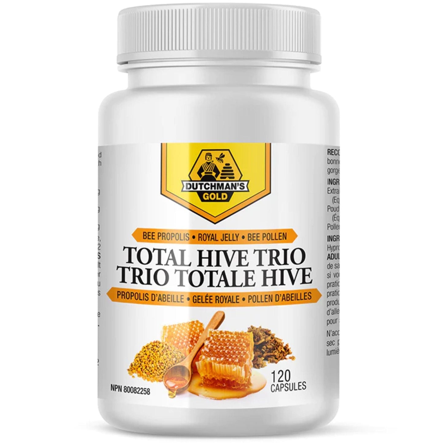 Dutchman's Gold Total Hive Trio, gives you the benefits of Royal Jelly, Propolis and Bee Pollen all in an easy to take capsule.