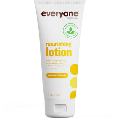 This versatile lotion is light and moisturizing enough to be used on face, hands and body. Nutrient-rich plant extracts and Vitamin E are combined with the tropical essence of Coconut and pure Lemon essential oil to leave skin nourished and gently scented. Formulated for every body, priced for every budget. Generously sized to share. 32 fl oz, packaged in a recycled bottle.