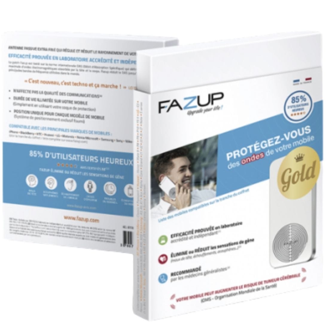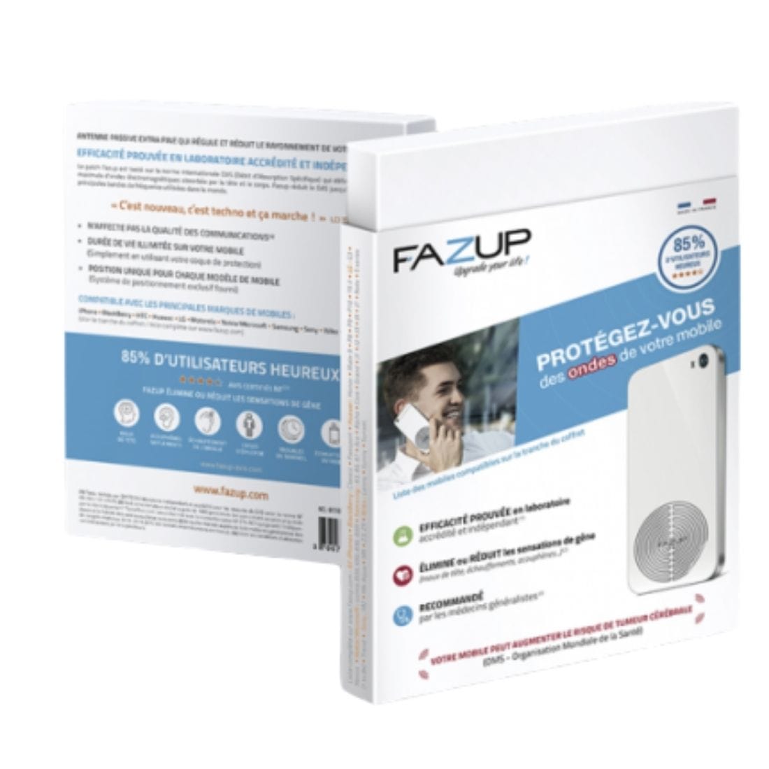 Reliable and very effective, Fazup is a revolutionary product resulting from 10 years of intensive research. Globally patented, this new technology created in France produces outstanding results. Its performances have been tested and validated by EMITECH, a French laboratory certified by COFRAC** for the measurement of SAR*. In order to ensure the optimal performance as certified in laboratory conditions.
