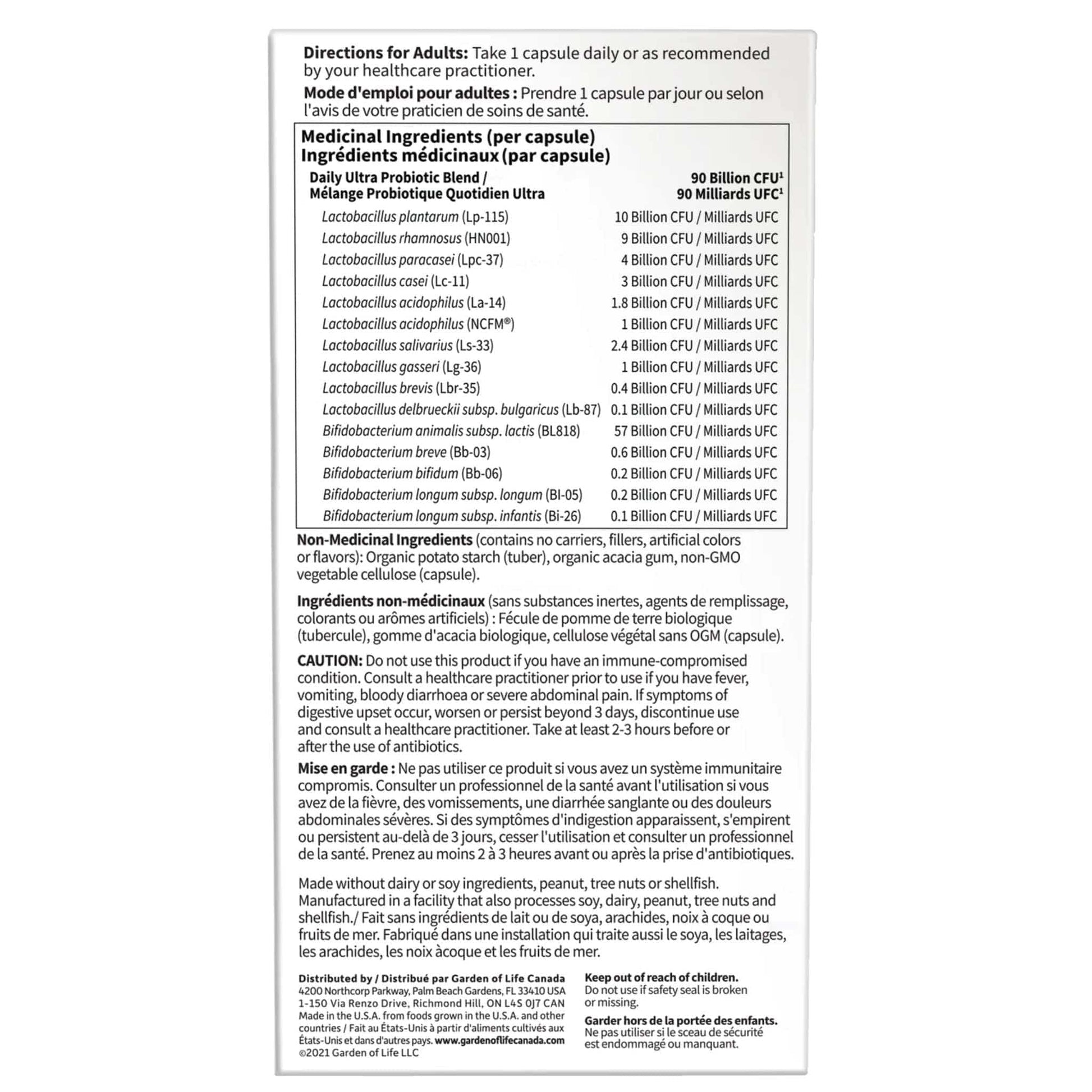 | Lactobacillus rhamnosus (HN001) | 9 Billion CFU / Milliards UFC |