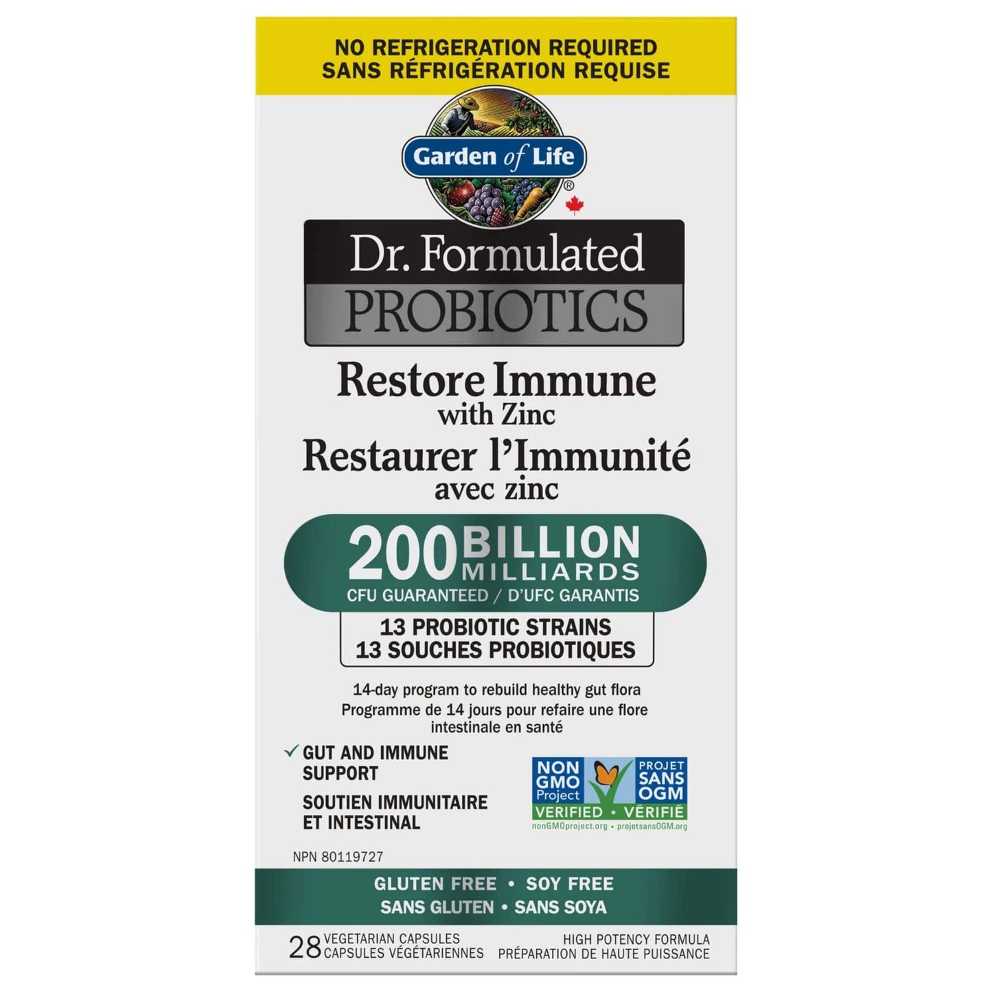 Garden of Life Dr. Formulated Restore Immune Probiotics 200 Billion Active Bacteria, Shelf Stable, 28 Vegetable Capsules