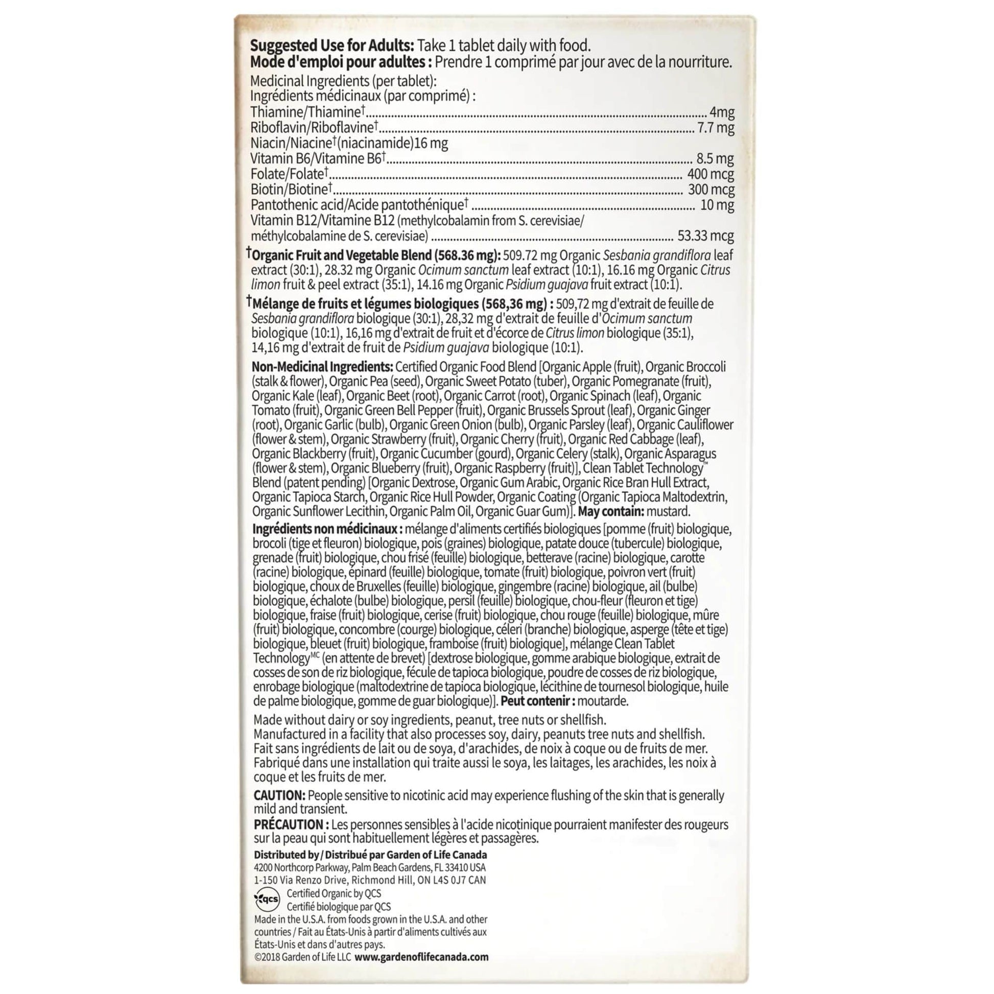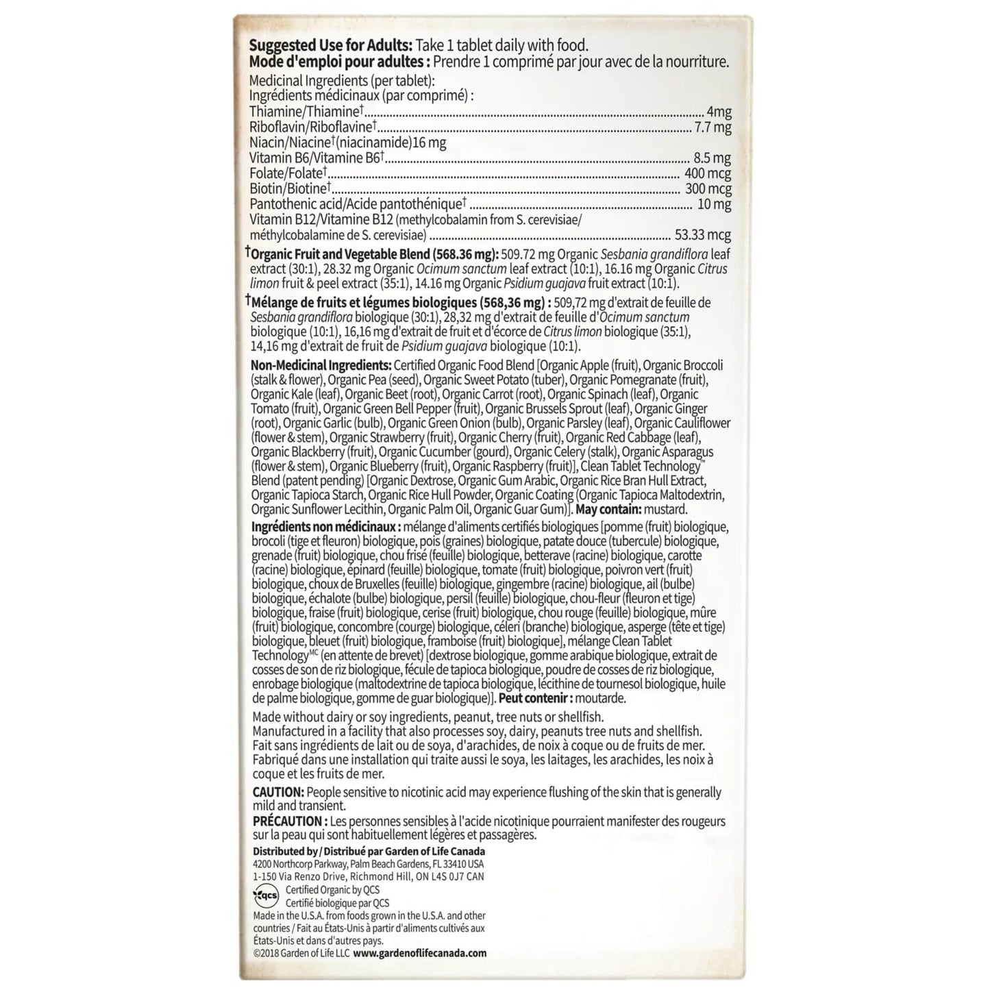 Boost your energy and metabolism with Garden of Life Organics Vitamin B-Complex Once Daily. Each tablet, made from 25 organic fruits, vegetables, and herbs, supports immune system, cognitive functions, and blood health. Certified USDA Organic, Non-GMO Project Verified, gluten-free, vegan, and kosher. Contains Biotin for promoting healthy hair, skin, and nails. No magnesium stearate.