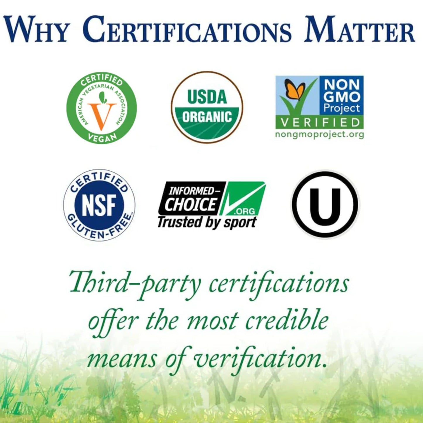 - - Certified Vegan, NSF Certified, Informed-Choice Certified, and Kosher