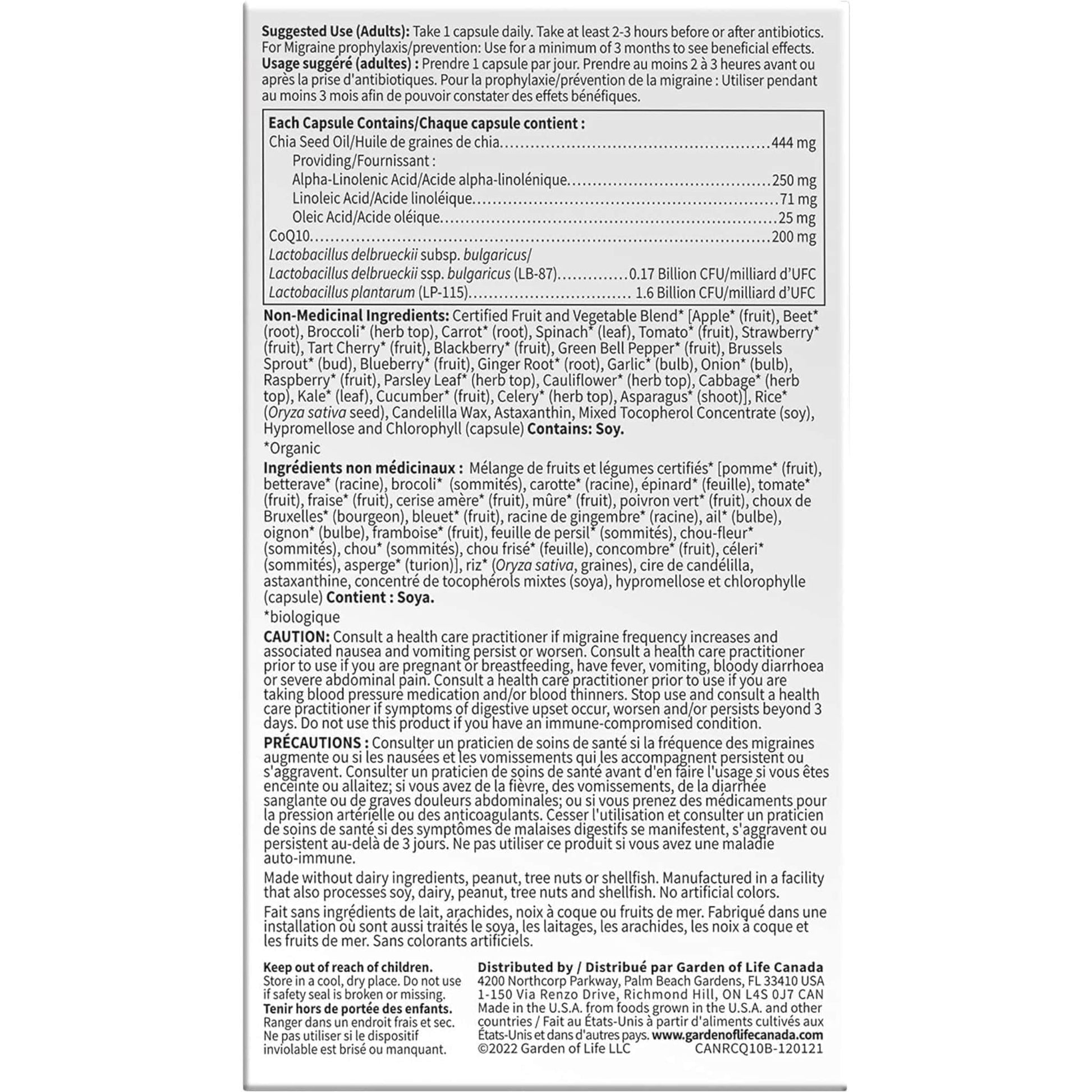 Recommended Dose (Adults): Take 1 capsule of Garden of Life Vitamin Code Raw CoQ10 200mg one to two times daily.
