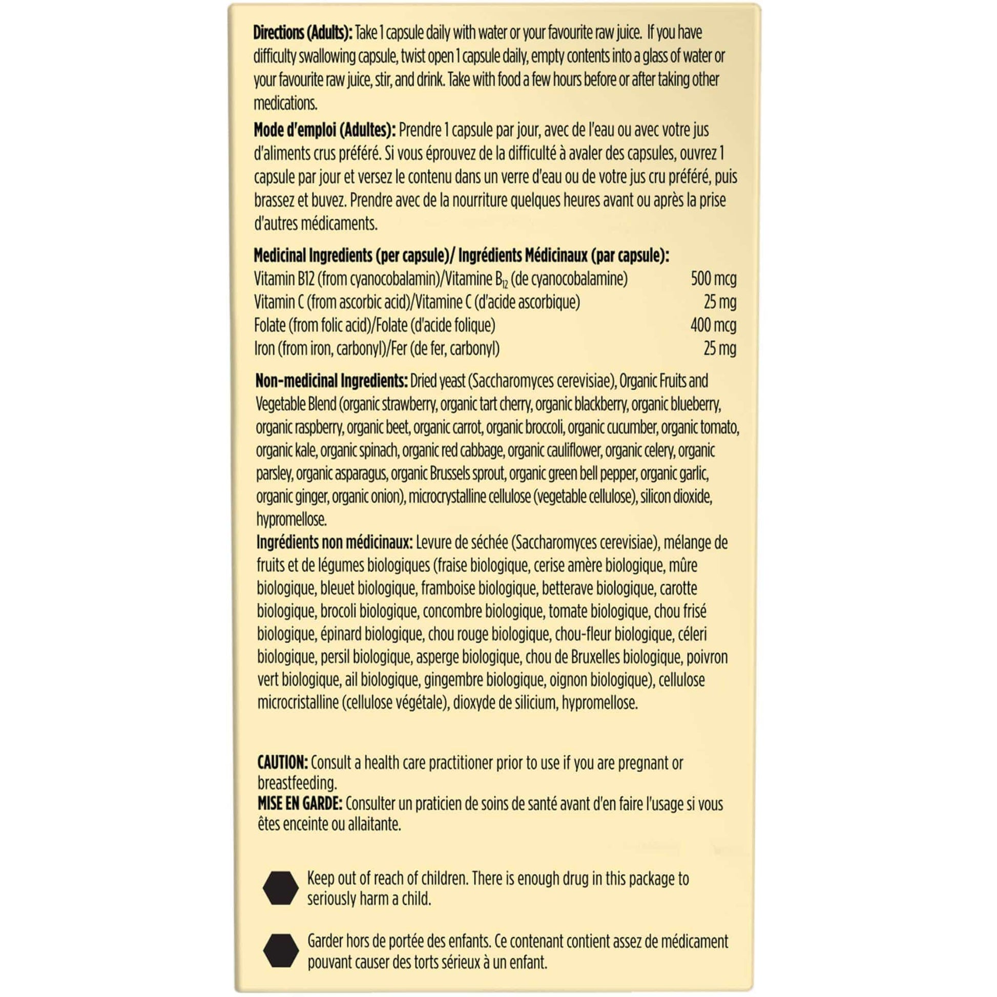 Additional Ingredients: Dried yeast (Saccharomyces cerevisiae), Organic Fruits and Vegetable Blend (organic strawberry, organic tart cherry, organic blackberry, organic blueberry, organic raspberry, organic beet, organic carrot, organic broccoli, organic cucumber, organic tomato, organic kale, organic spinach, organic red cabbage, organic cauliflower, organic celery, organic parsley, organic asparagus, organic Brussels sprout, organic green bell pepper, organic garlic, organic ginger, organic onion), microcrystalline cellulose (vegetable cellulose), silicon dioxide, hypromellose.