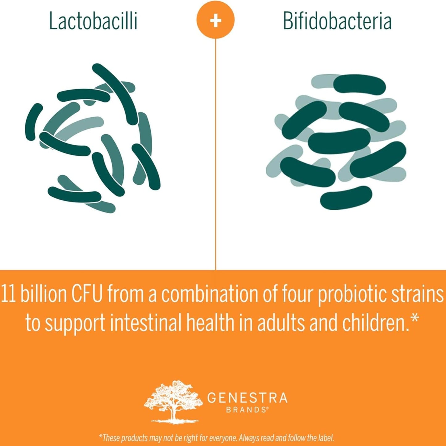 - Provides 22 billion CFU per day from two strains of Lactobacillus acidophilus, Bifidobacterium bifidum, and Bifidobacterium animalis subsp. lactis