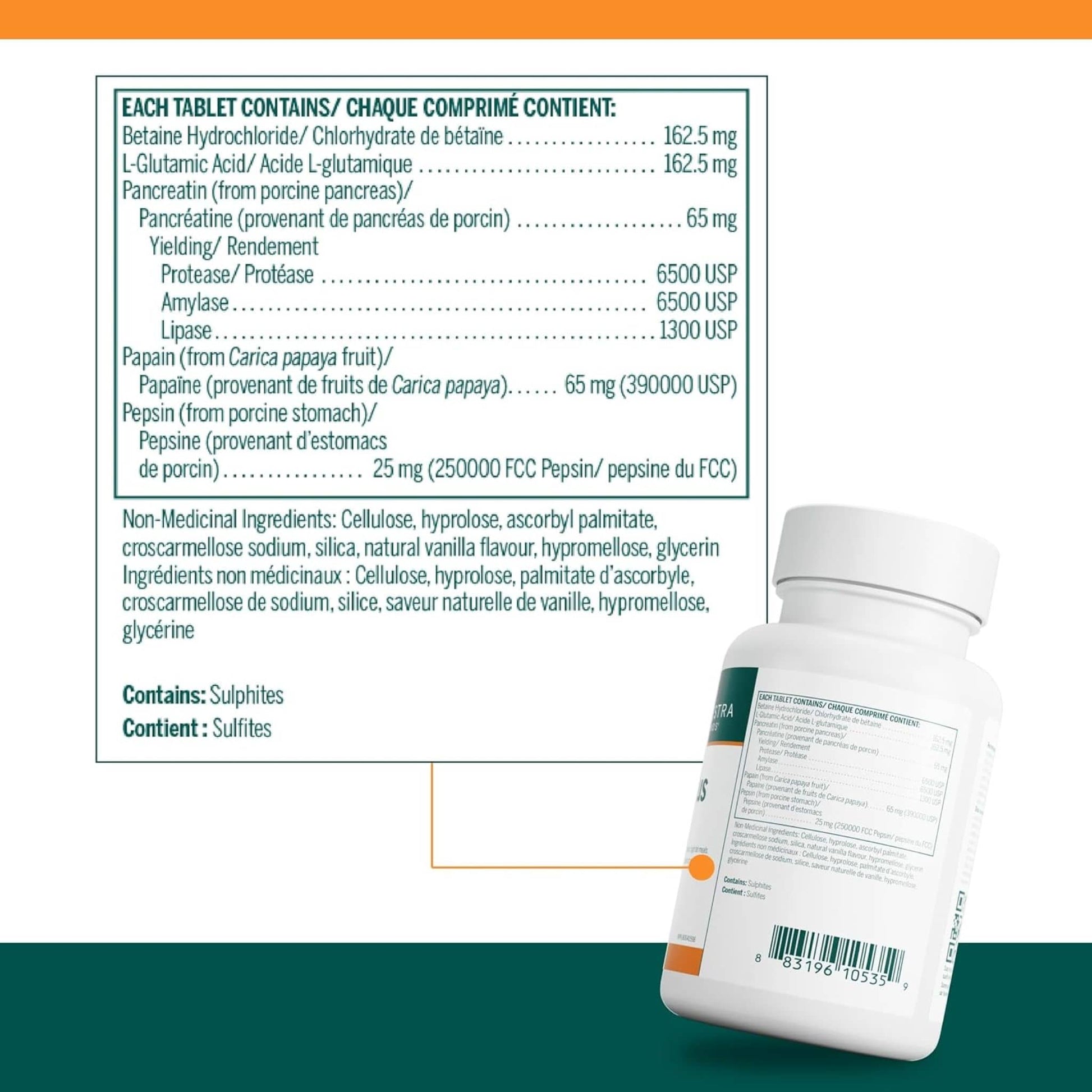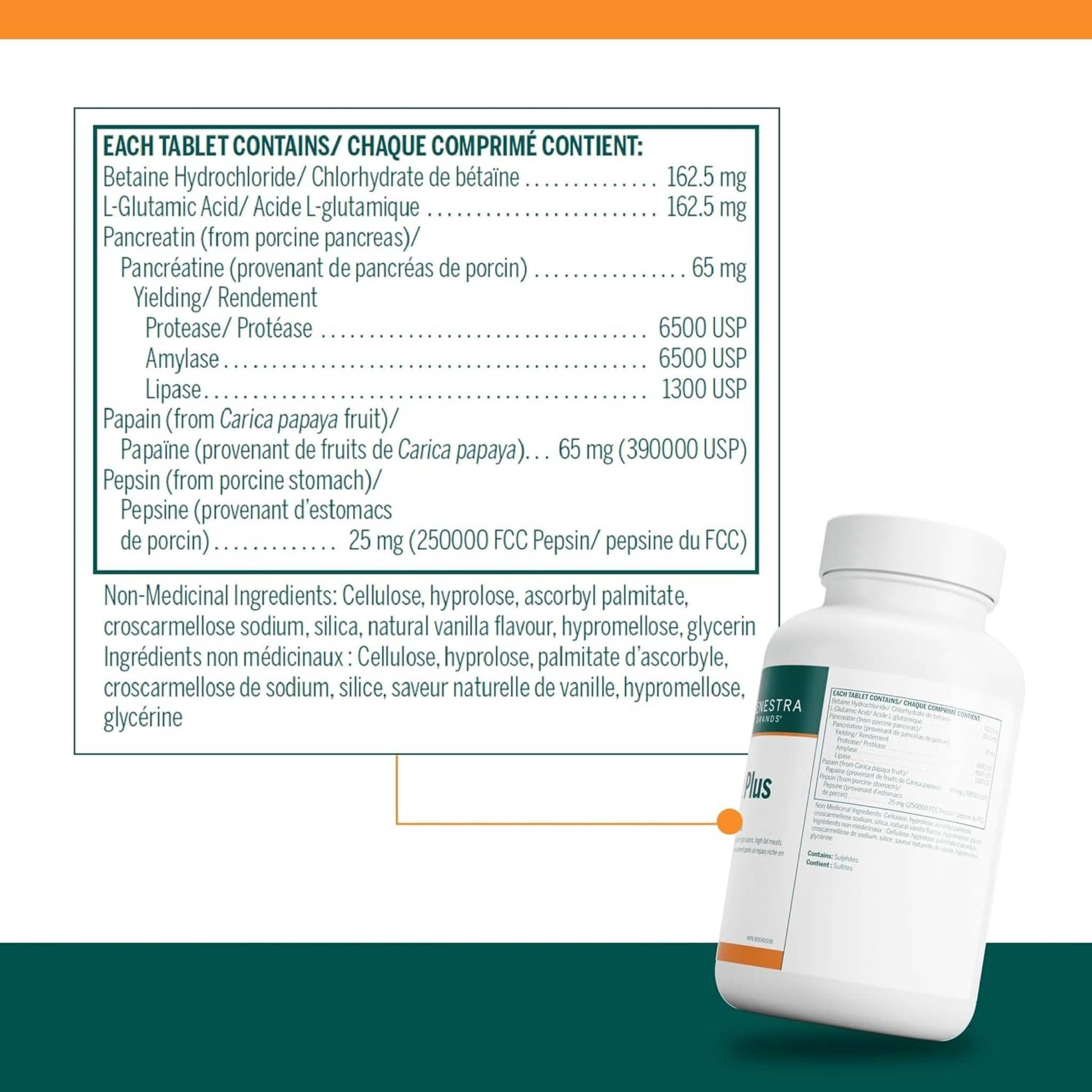 | Pepsin (from porcine stomach) | 25 mg (250,000 FCC Pepsin) |