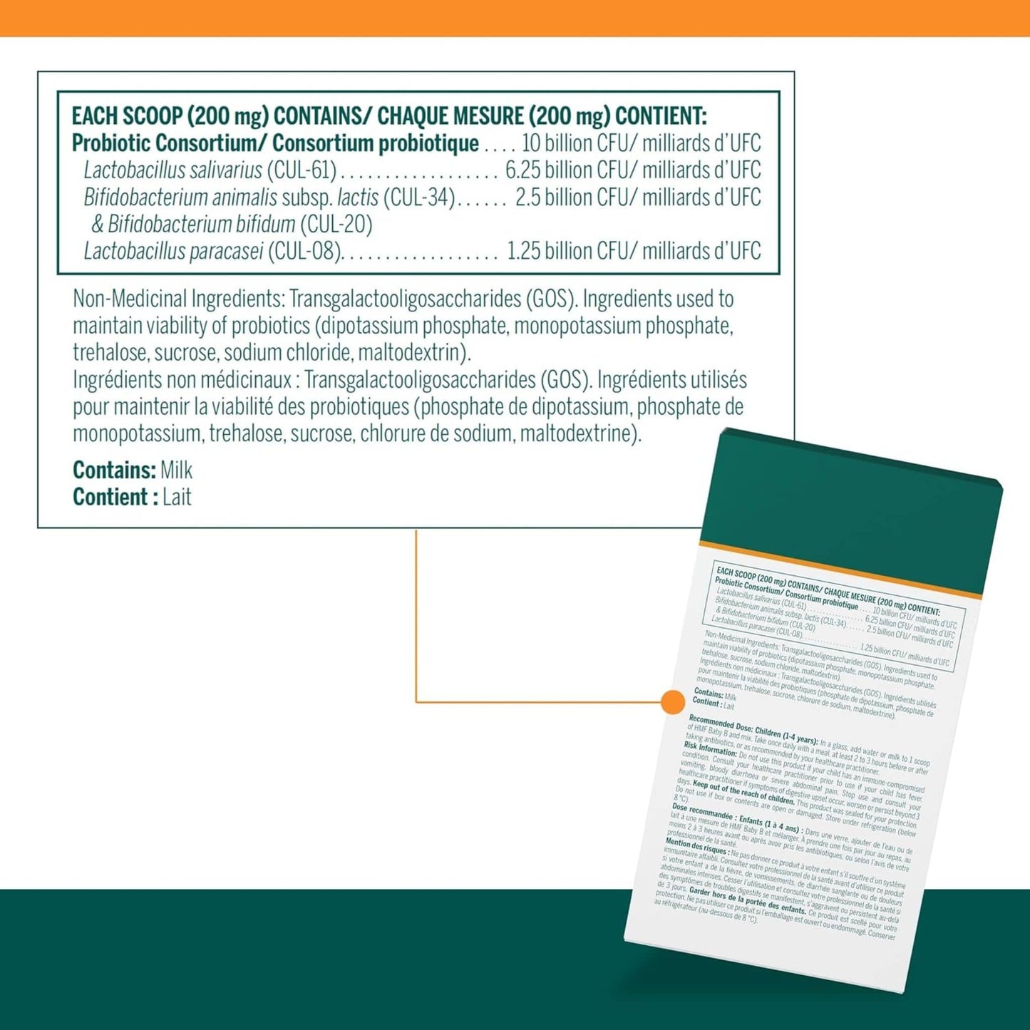 Children (1-4 years): In a glass, add water or milk to one scoop of HMF Baby B and mix. Take once daily with a meal, at least two to three hours before or after taking antibiotics, or as recommended by your healthcare practitioner