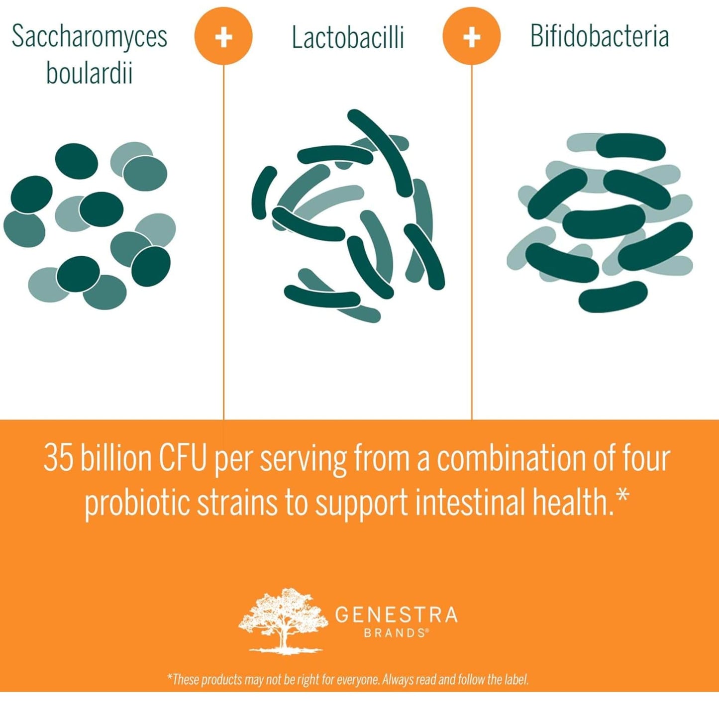 - Includes Saccharomyces boulardii plus four proprietary probiotic strains