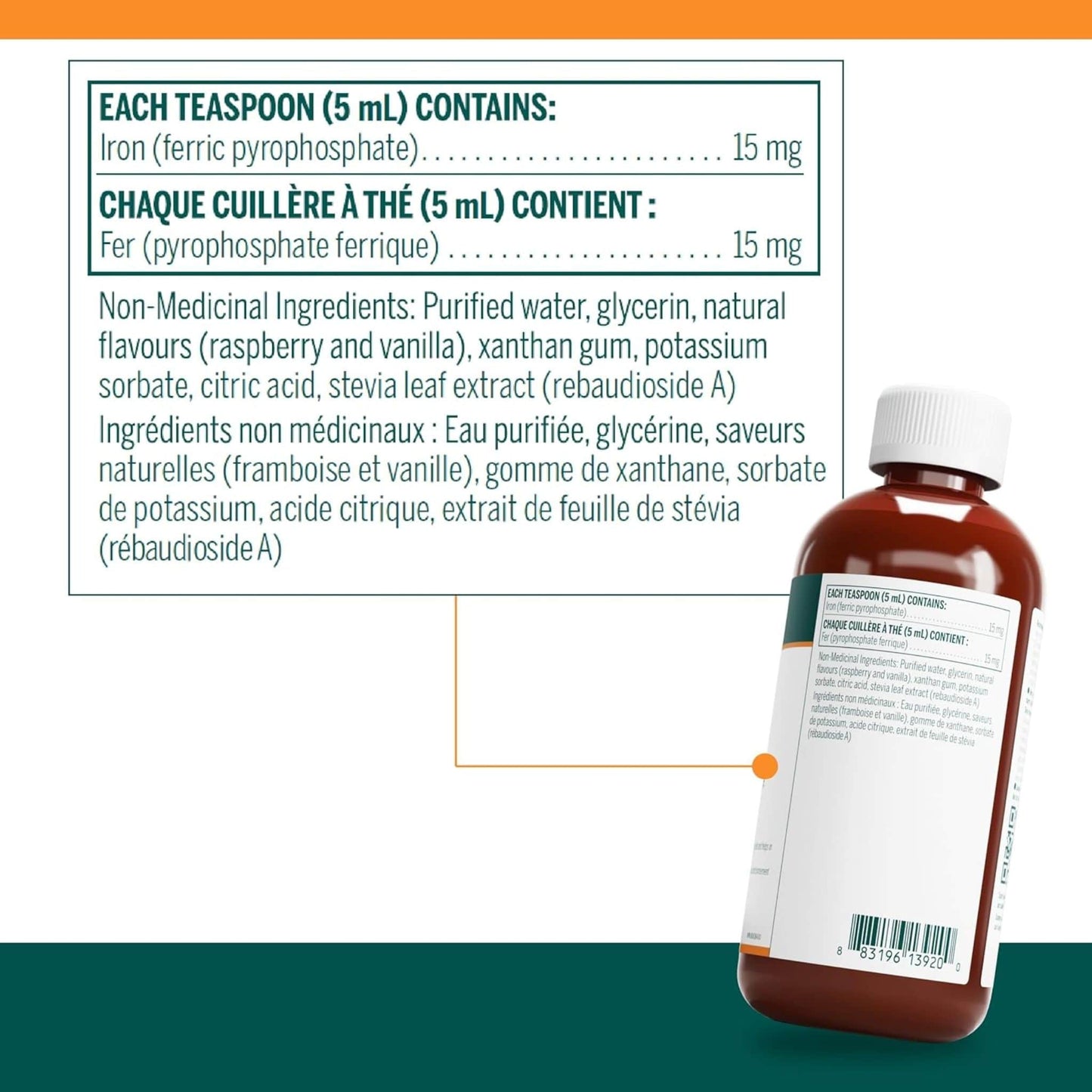 Warning: For pregnant women, taking a daily prenatal multi-vitamin mineral supplement along with this product may result in constipation, diarrhoea or vomiting due to the high intake of iron. Hypersensitivity has been known to occur; in which case, discontinue use. Do not use if inner seal is missing or broken. Shake well before each use. Store in a cool, dry place. Keep out of reach of children. There is enough drug in this package to seriously harm a child.