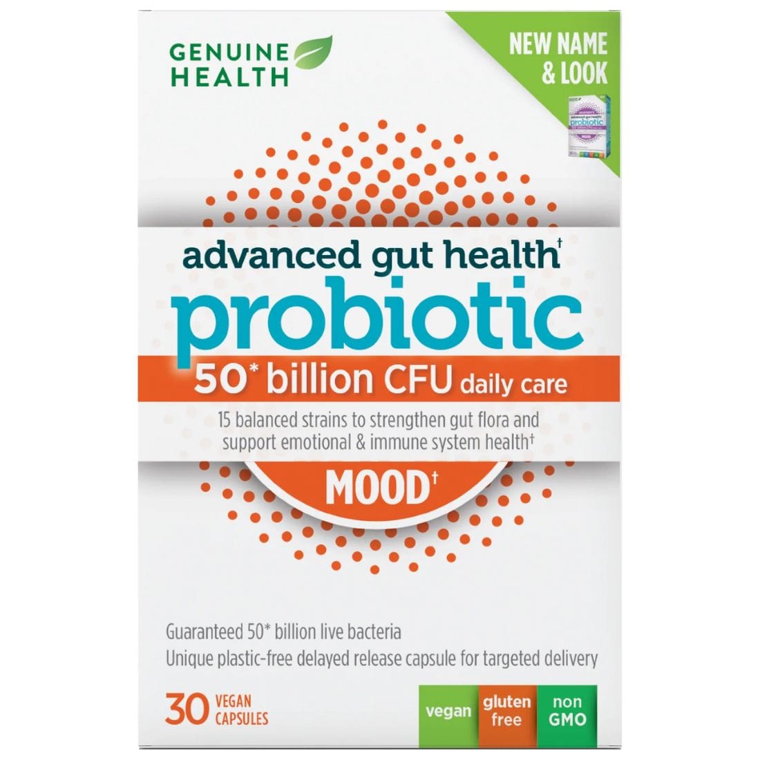 Genuine Health Advanced Gut Health Probiotic Mood, 50 Billion CFU, 15 Diverse Strains, 30 Delayed-Release Capsules