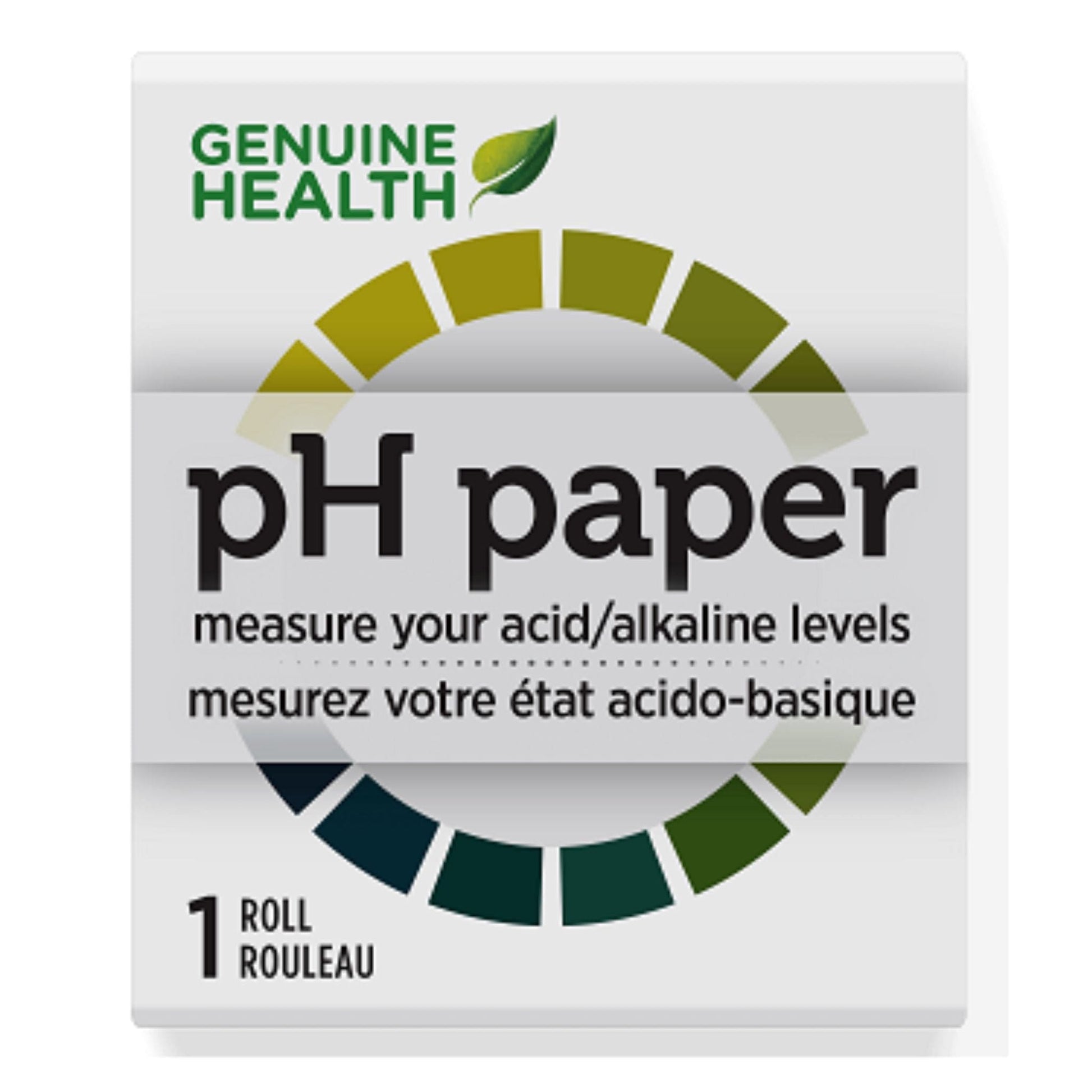 Discover your body's pH balance with Genuine Health pH Paper. This roll of pH paper allows you to easily test your acidity levels, offering insights into your overall health, including bones, skin, digestion, and body weight. Are you acidic? Find out and take control of your well-being.