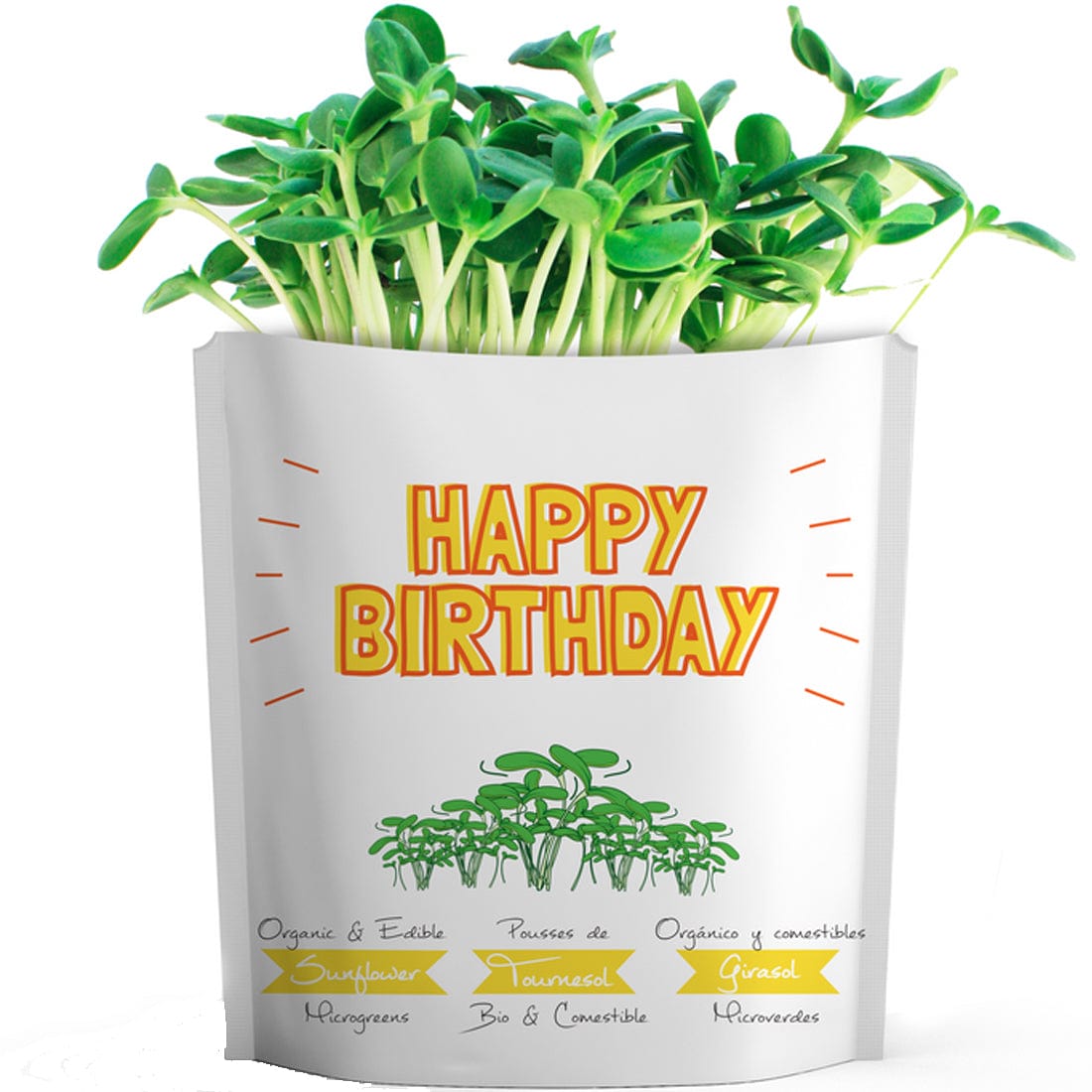Say Happy Birthday with some serious ZIP!! Why send a regular card when you can send a Gift-a-Green Happy Birthday sunflower microgreens card? Your recipient will test their green thumb and have tones of fun reading your personal message, opening the pouch, planting the seeds and growing their very own mini microgreen sunflower garden. Within 1-2 weeks they’ll be ready to harvest and eat. The best part is – your Gift-a-Green card will be on full display and have them thinking about you all week long!