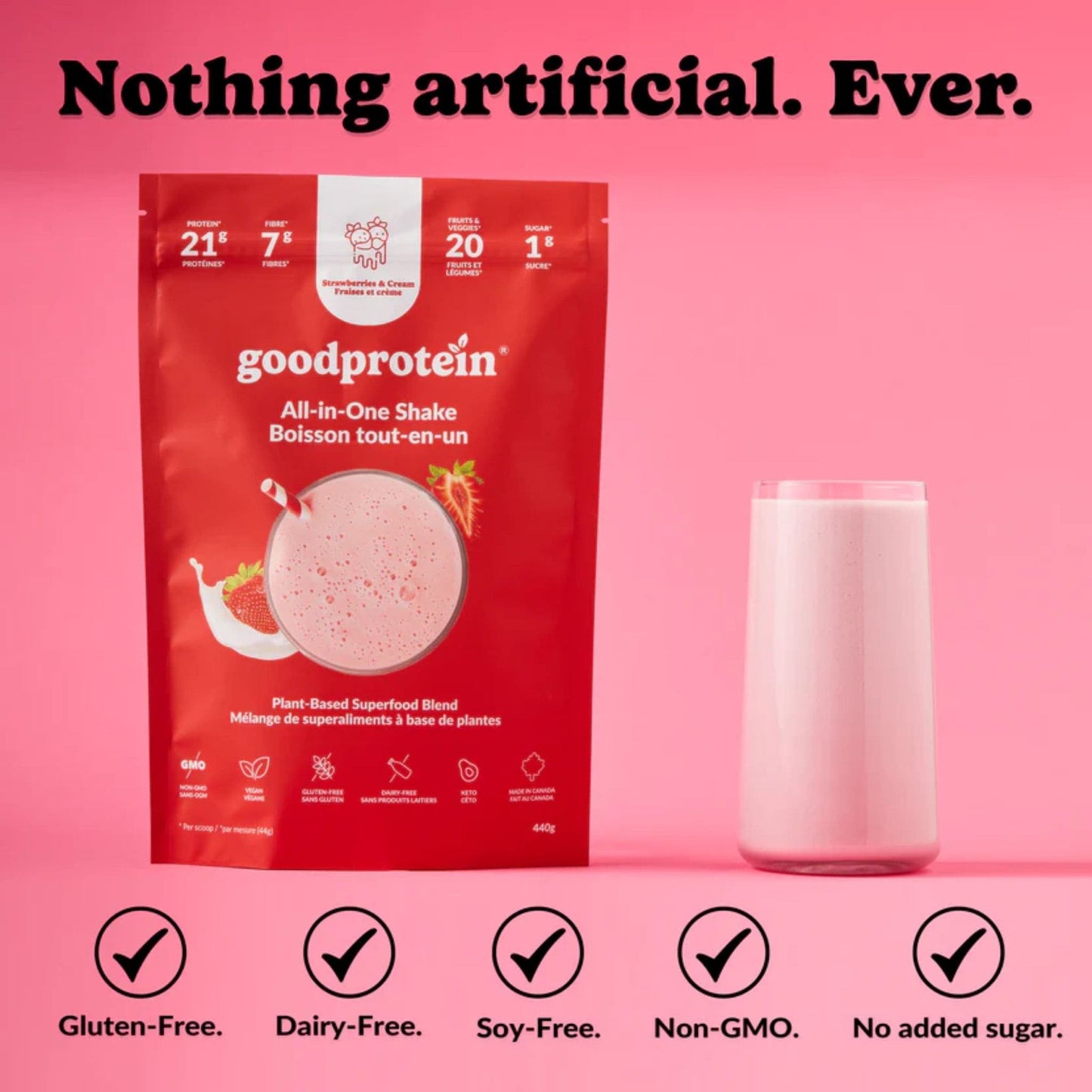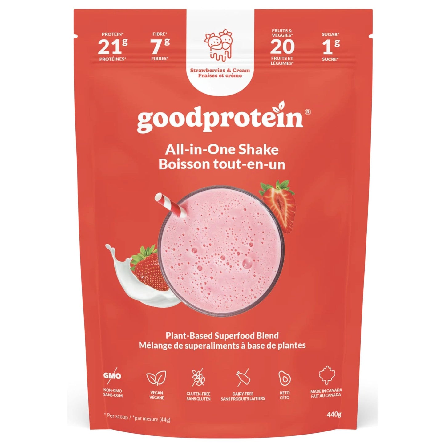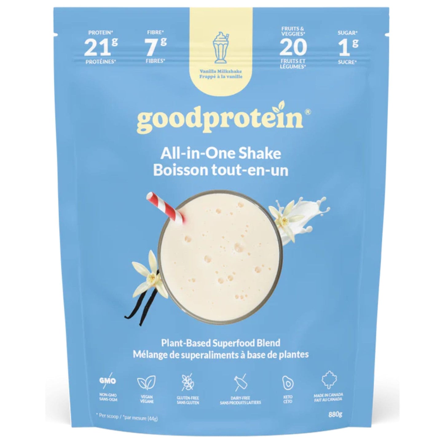 Good Protein All-in-One Shake Powder, Protein 21g, Fibre 7g, Plant-Based, Vegan, Gluten-Free, Keto-Friendly Shake with Superfoods, Probiotics and Essential Nutrients, 440g-880g