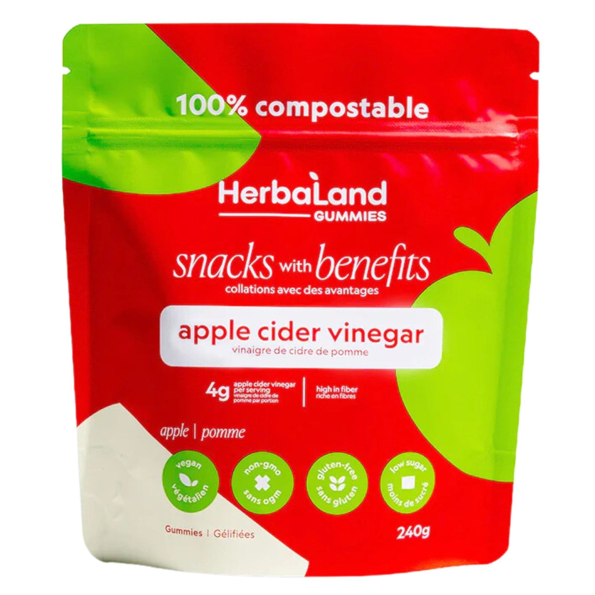 Herbaland Apple Cider Vinegar Gummies are vegan, low-sugar gummies that are a perfect on-the-go snack, offering a balanced combination of health benefits and a delicious apple flavor. Made in Canada with non-GMO, gluten-free ingredients, Herbaland Apple Cider Vinegar Gummies are a guilt-free treat you can enjoy anytime.