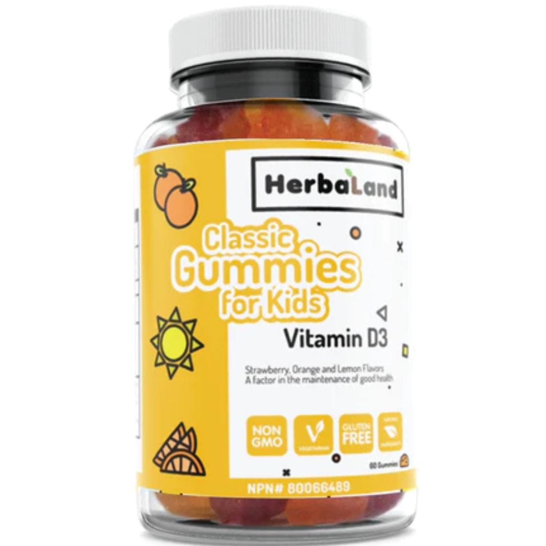 Herbaland Vitamin D3 Gummies for Kids 400IU, Non-GMO, 60 Gummies